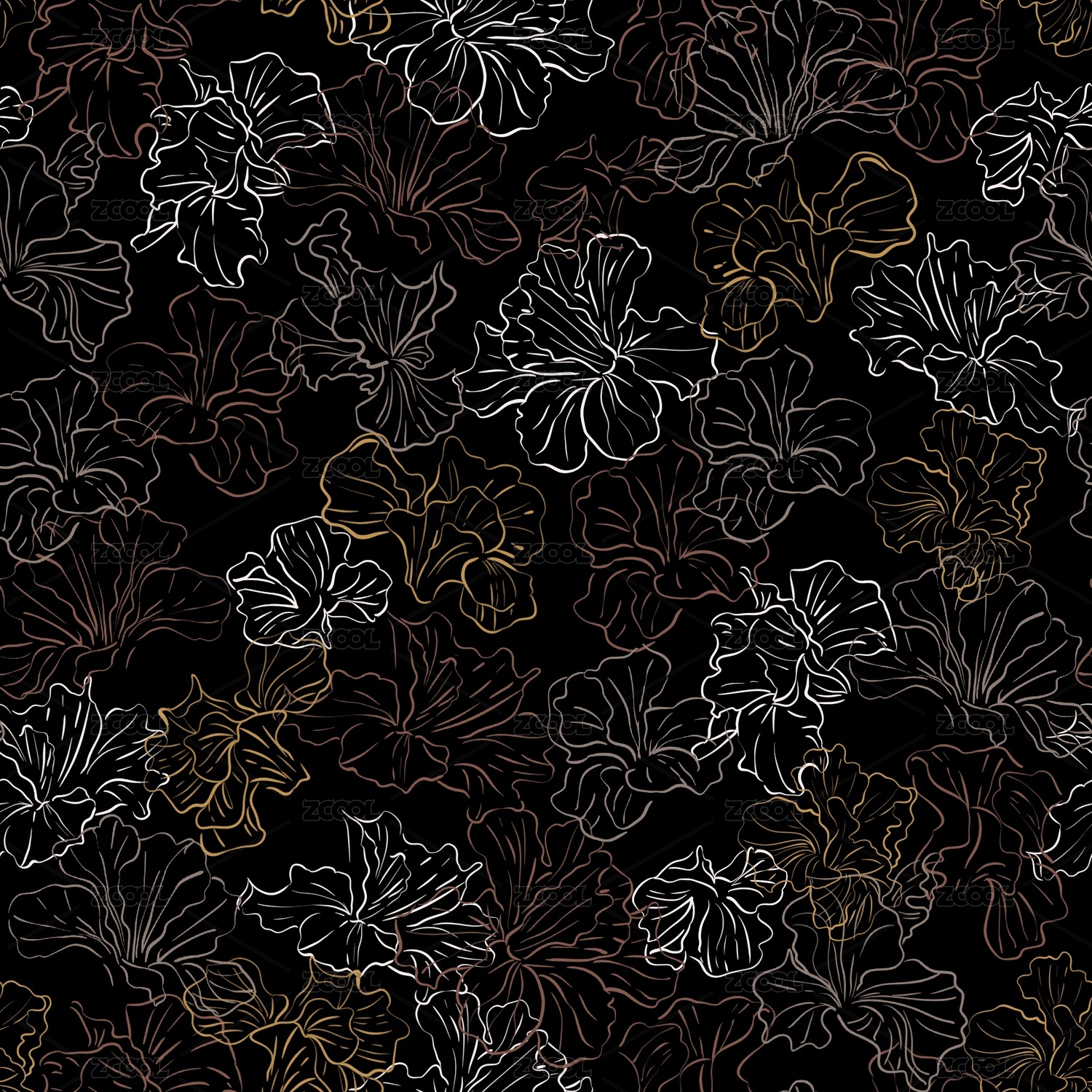 手绘植物花卉抽象线条家纺服装印花花型