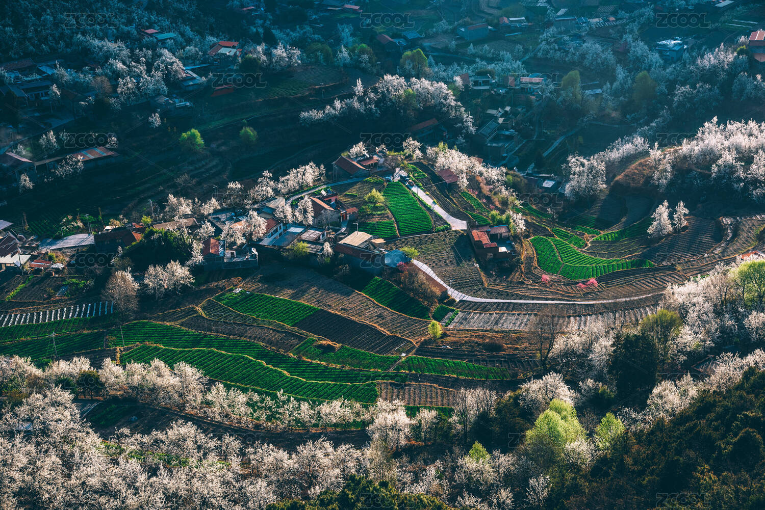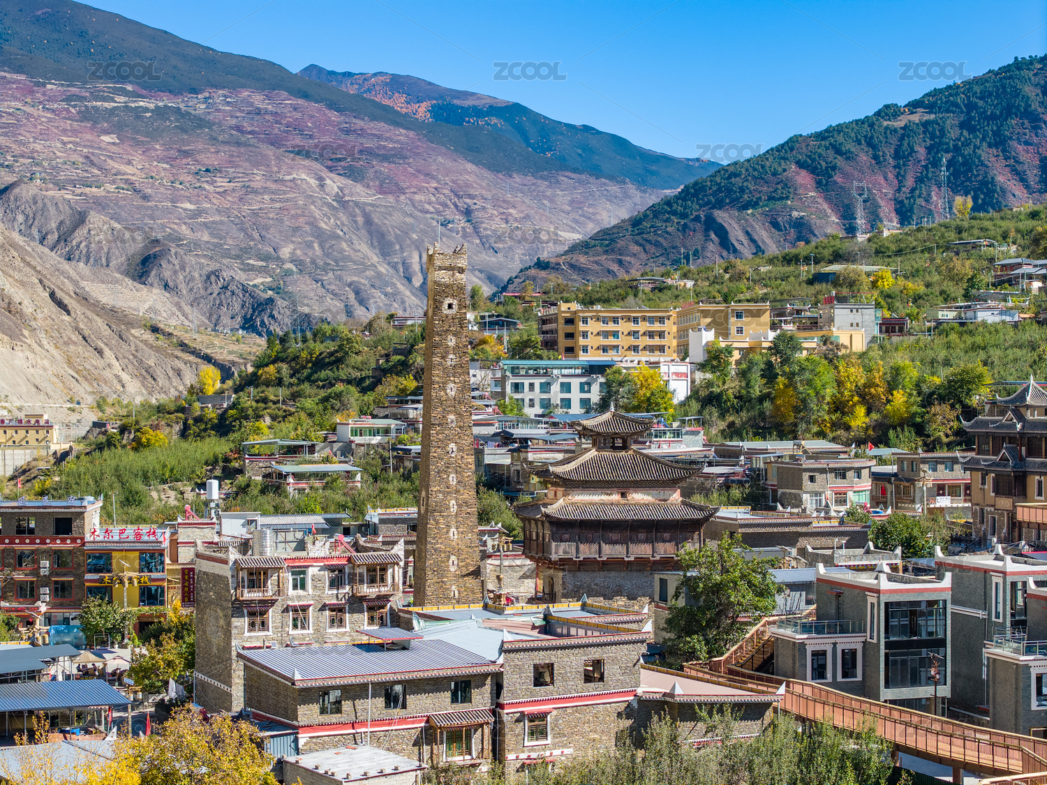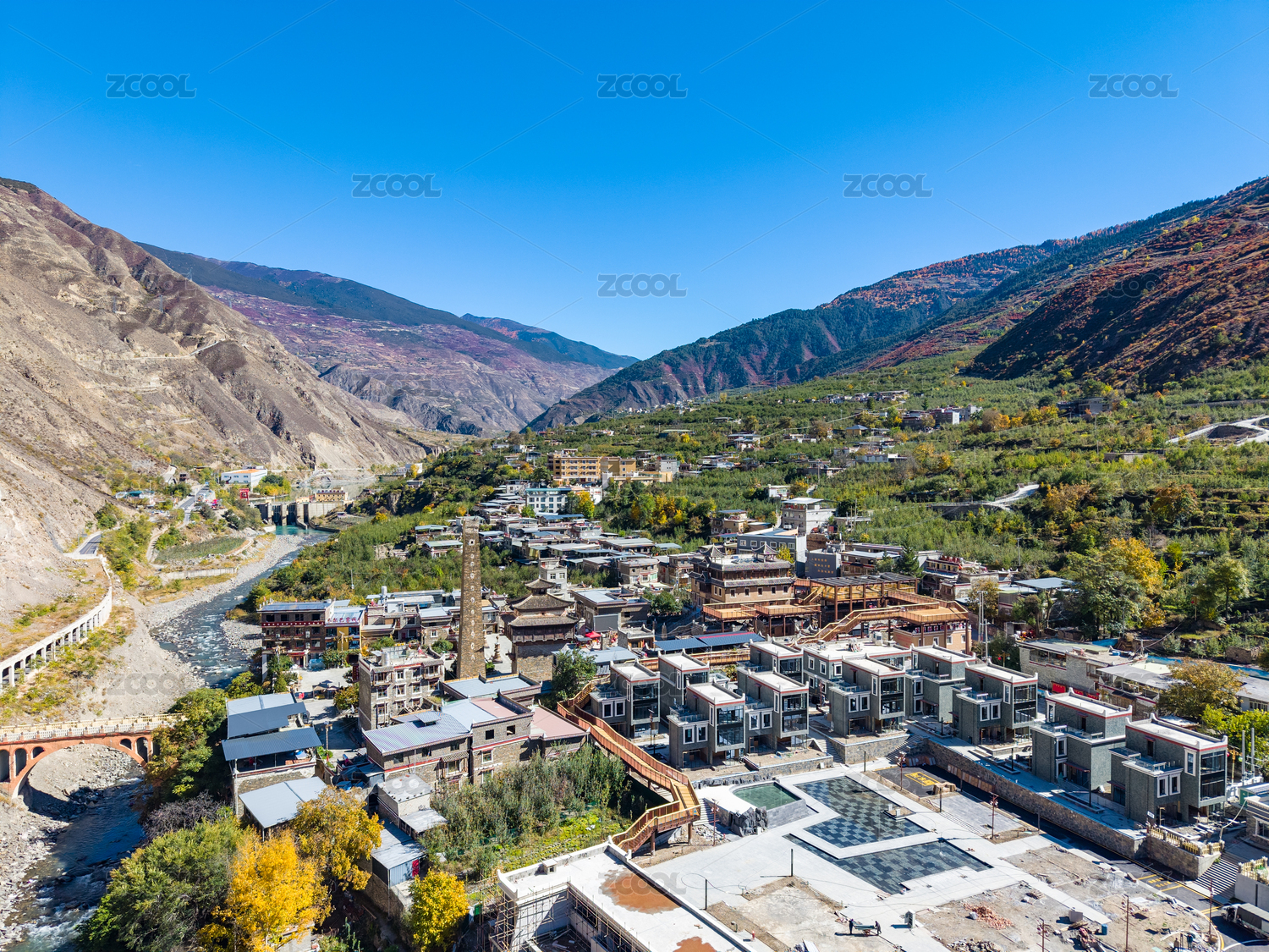 中国四川省阿坝州茂县叠溪镇沙湾村俯拍