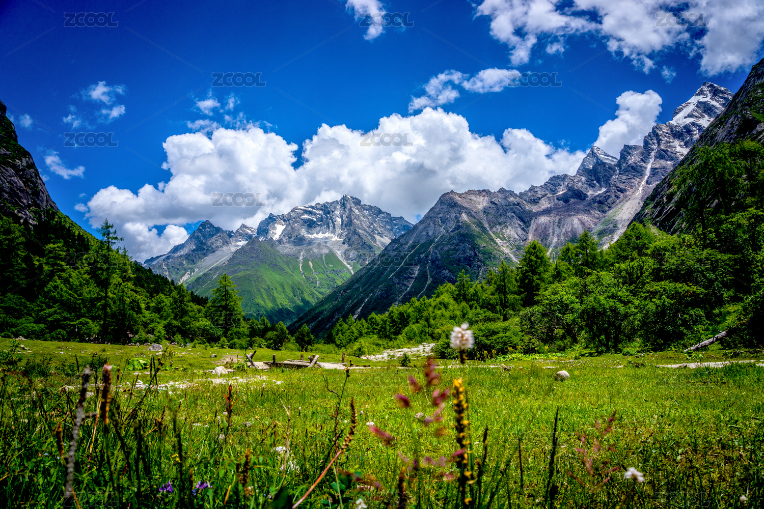 中国四川省阿坝州理县毕棚沟夏季上午高山草甸