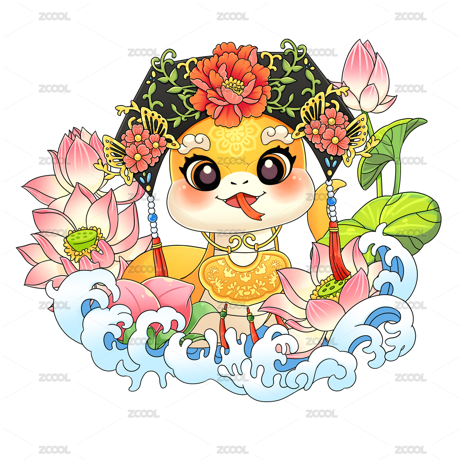 新年蛇年卡通形象:蛇年吉祥插画