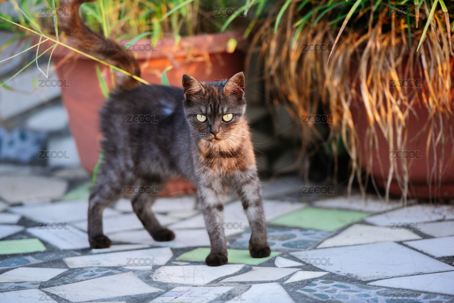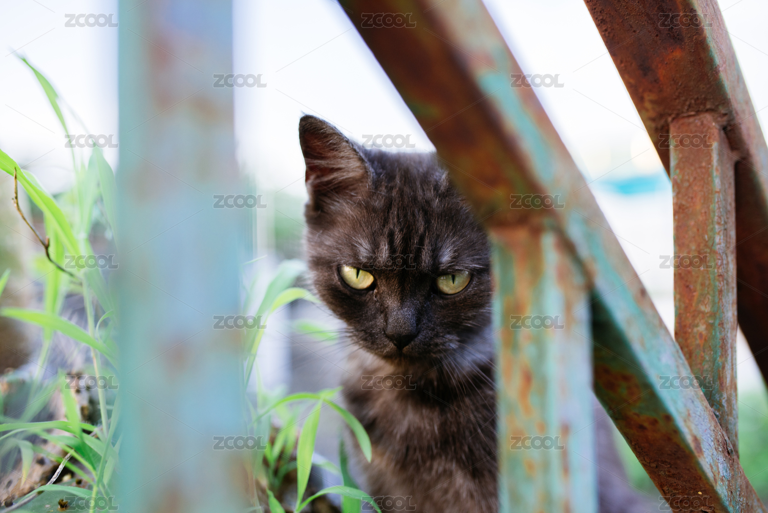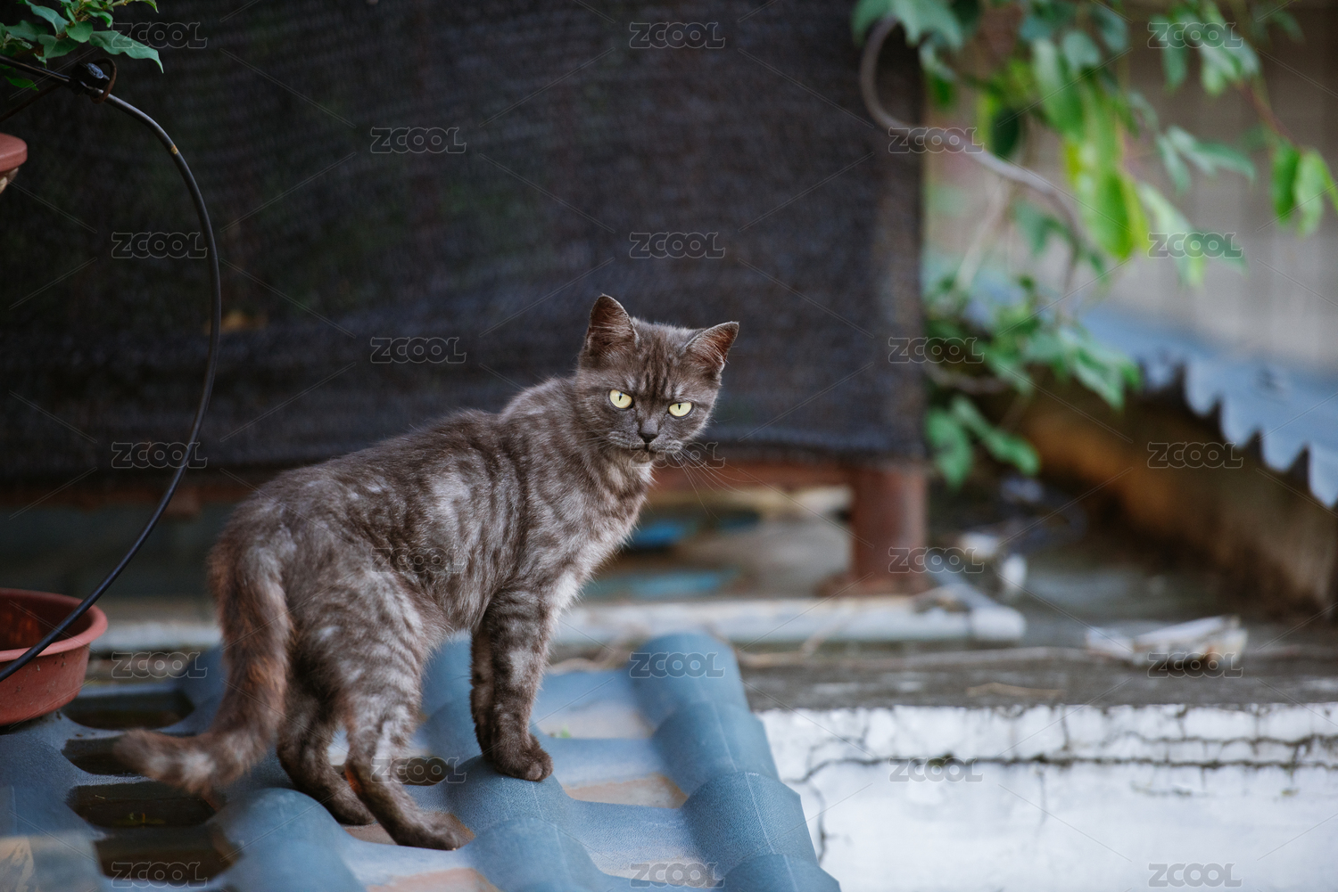 一只俯视着镜头的凶猛英短猫 宠物概念插画