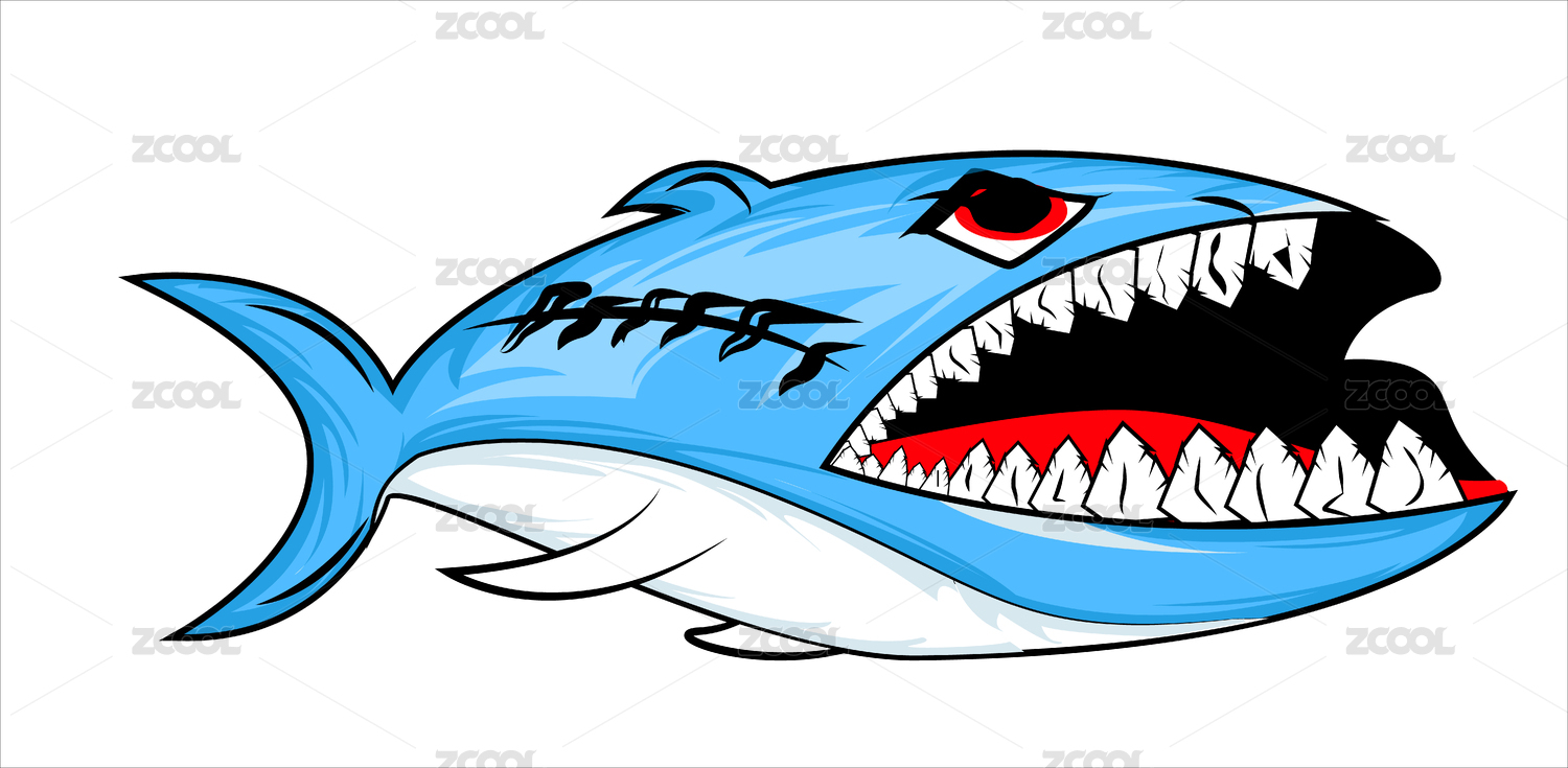 一只张嘴漏出牙齿的可爱又凶狠的蓝色鲨鱼