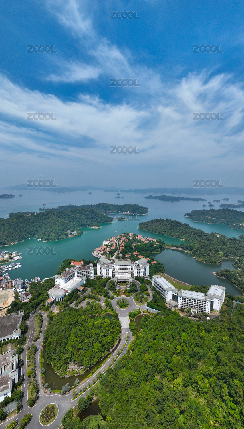 广东省河源市万绿湖九里湖畔航拍