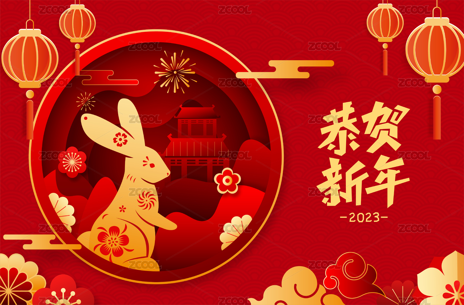中国传统新春佳节,春节矢量背景图,灯笼