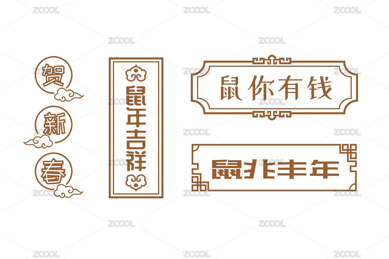 新春佳节中国风字体矢量插画