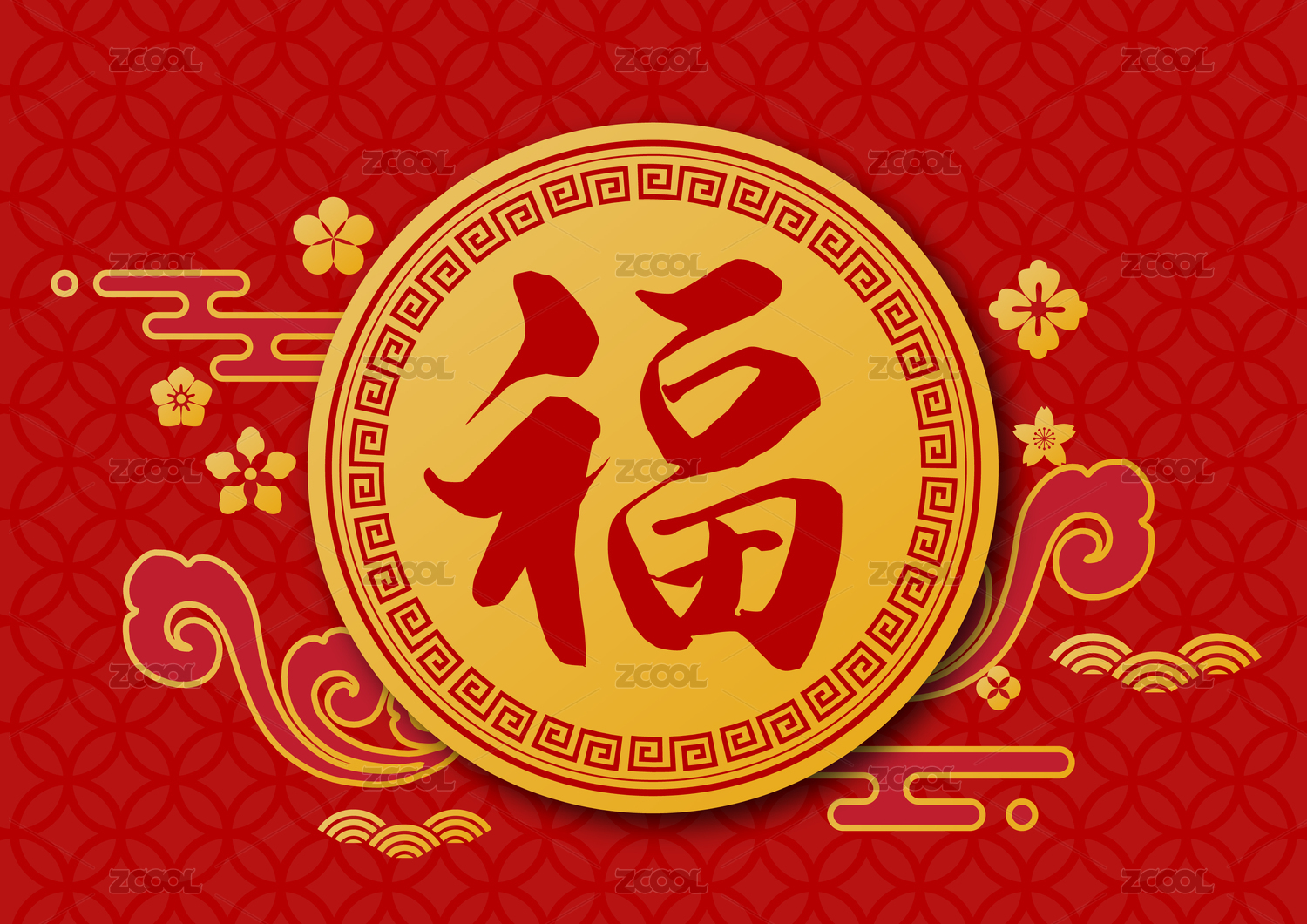 新年新春佳节过年喜庆祥云插画