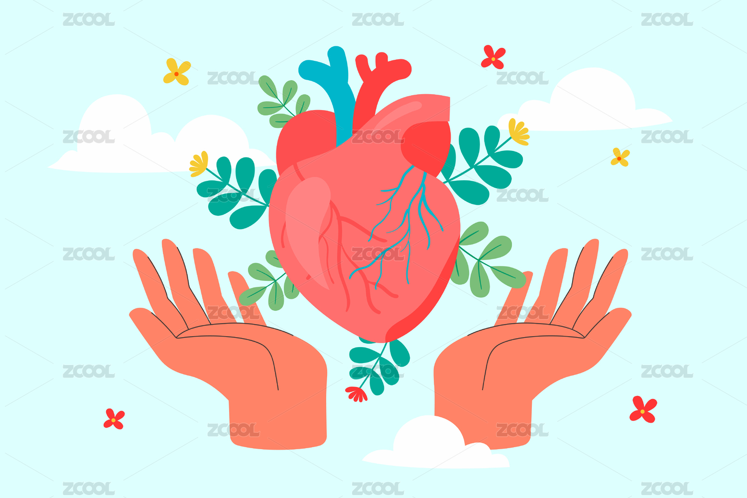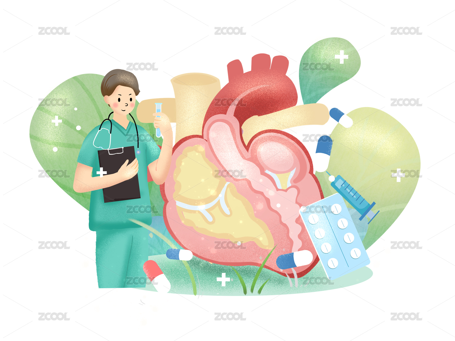 卡通手绘心脏病心肌梗塞医疗护理插画
