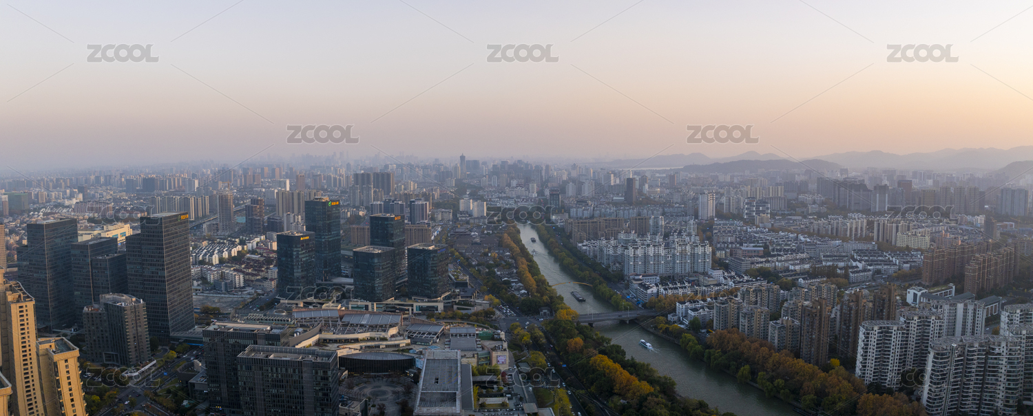 浙江省杭州拱墅区大运河拱宸桥夜景航拍