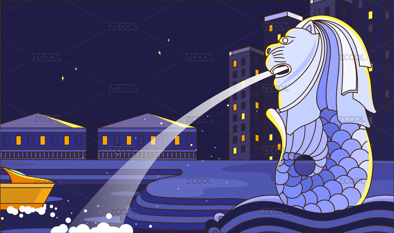 新加坡旅游地标矢量插画