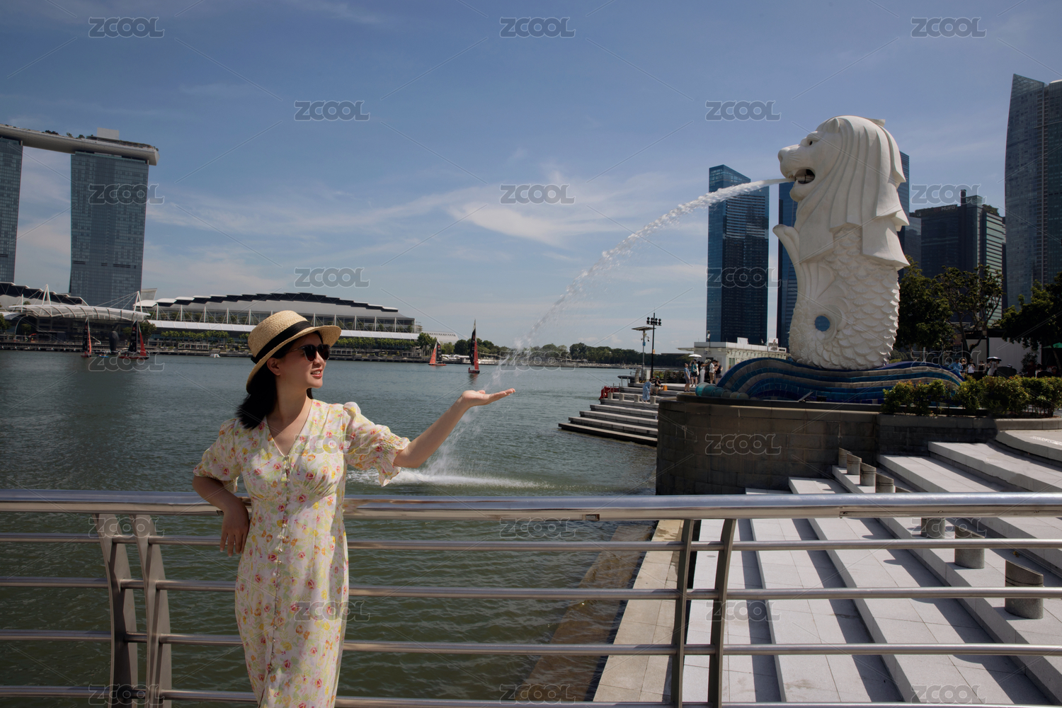 亚洲快乐女人旅游在靠近新加坡滨海湾金沙酒店