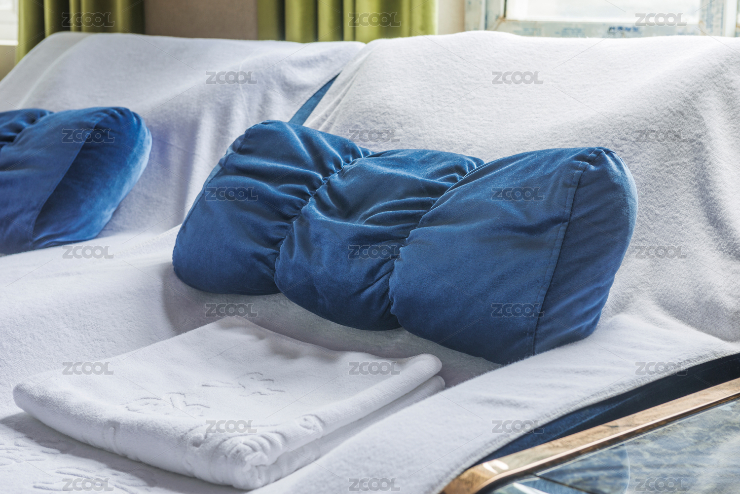 足疗床上的蓝色靠枕