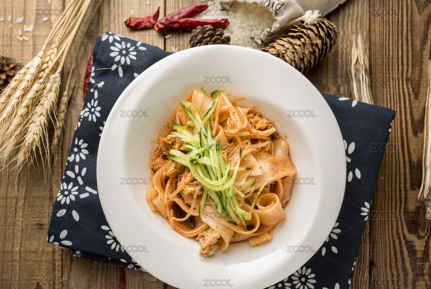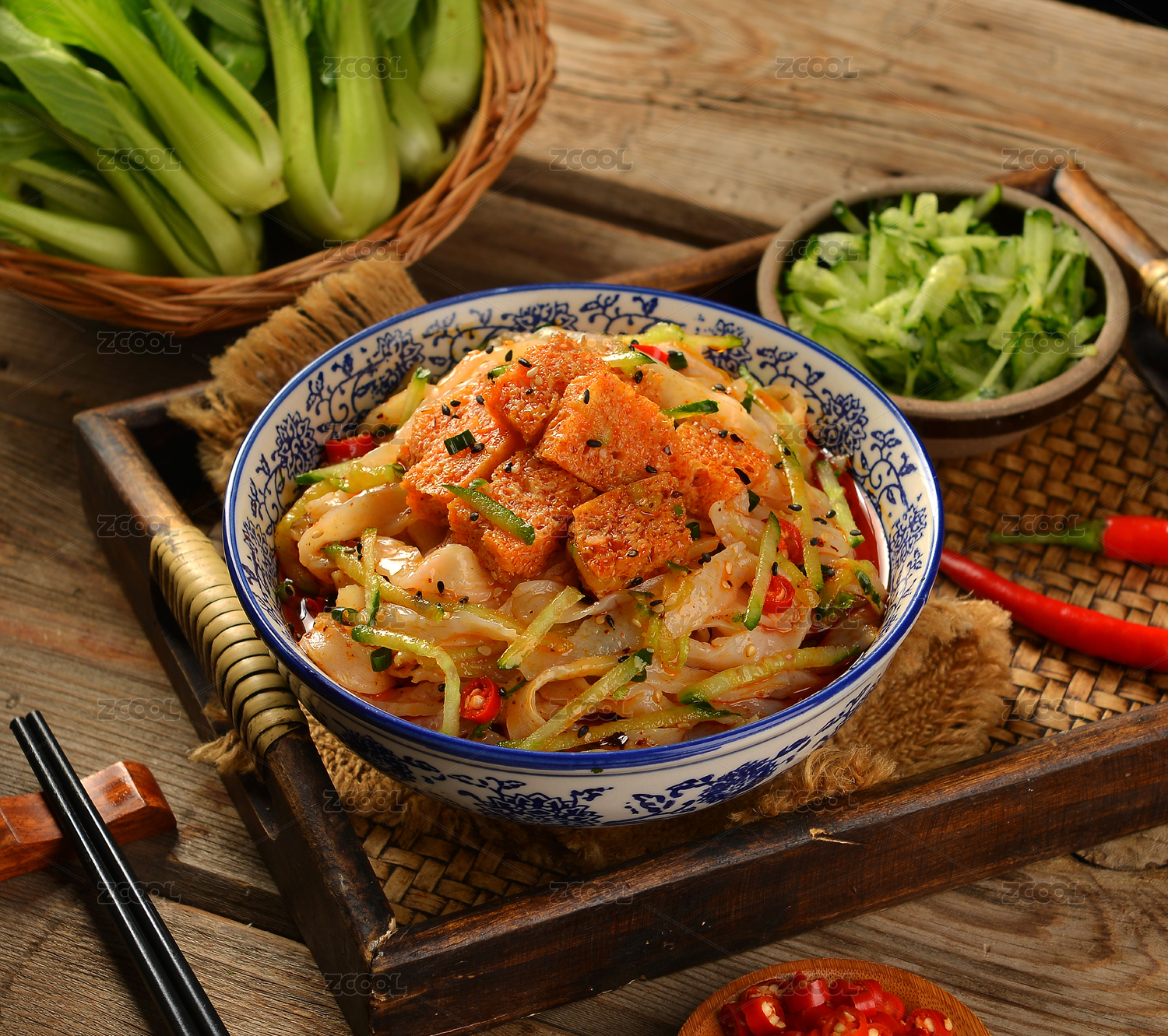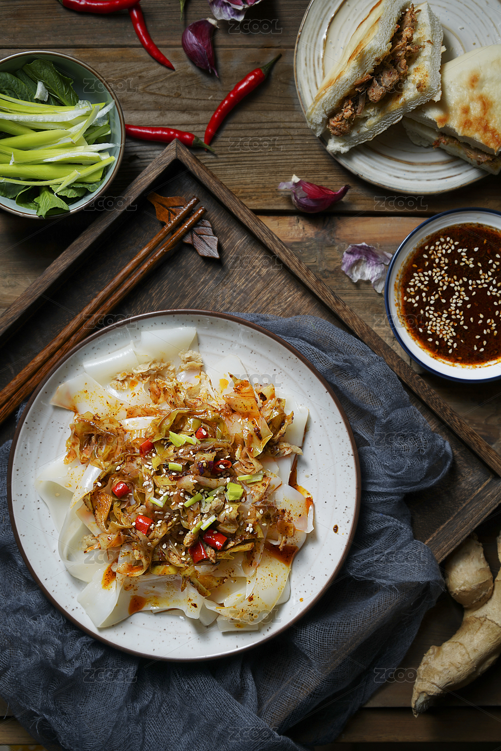 大理石背景上的陕西宝鸡擀面皮凉皮