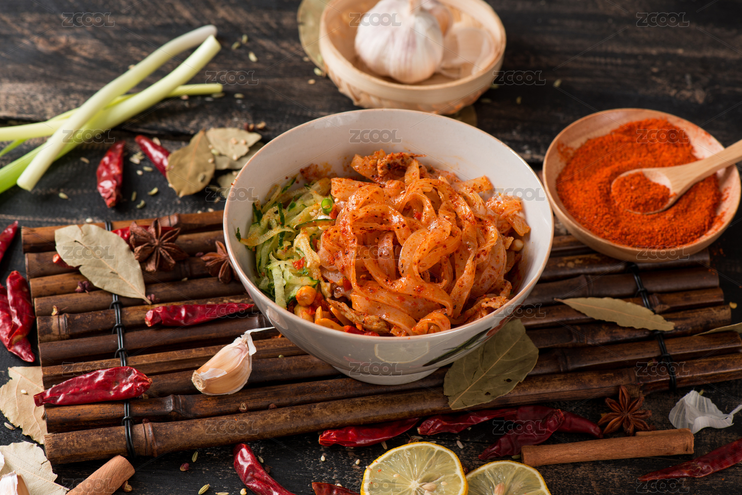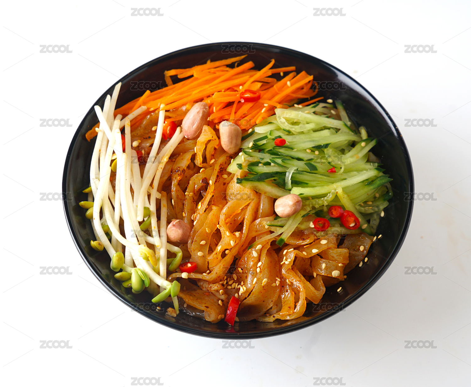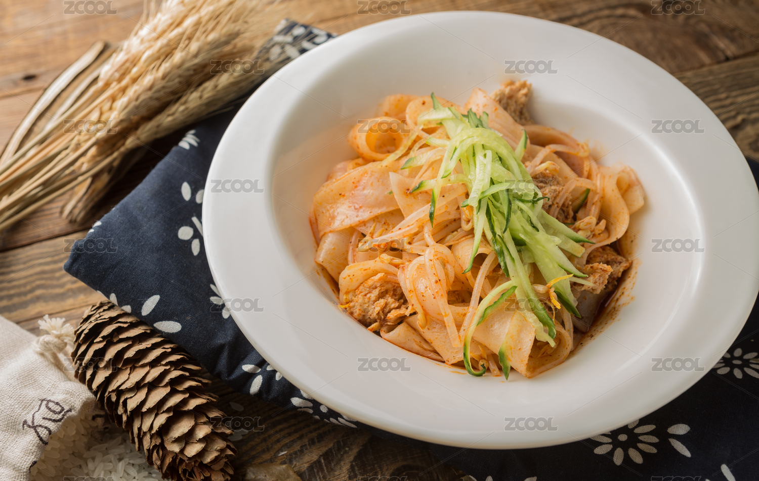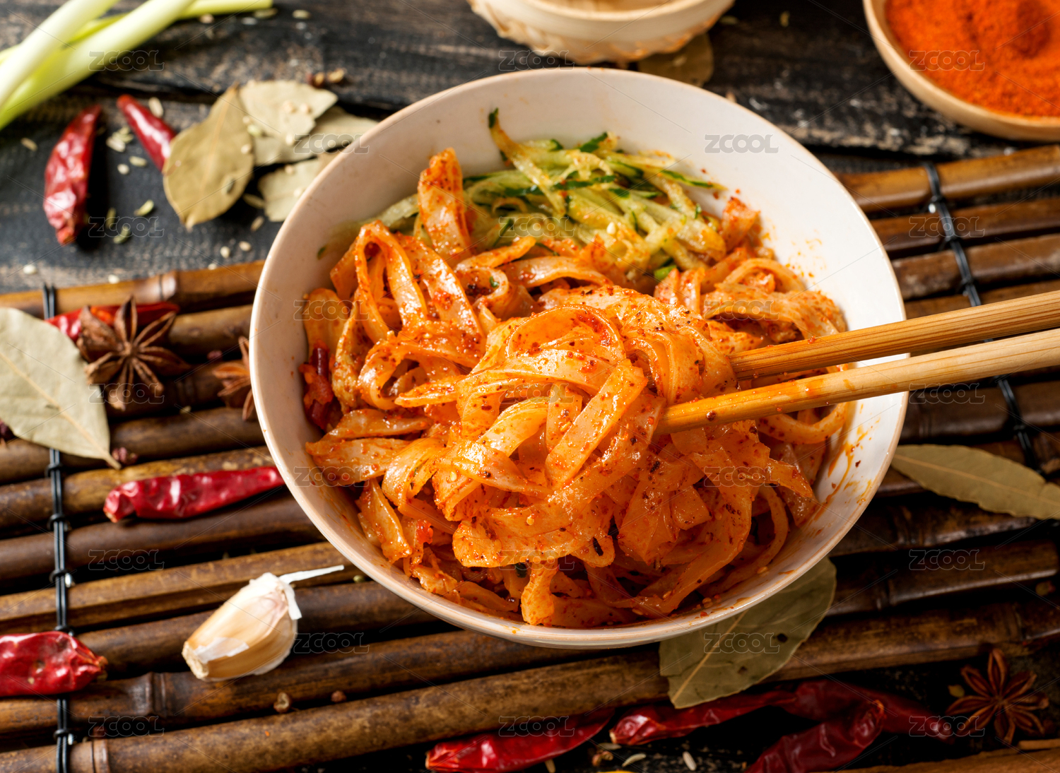 大理石背景上的陕西宝鸡擀面皮凉皮