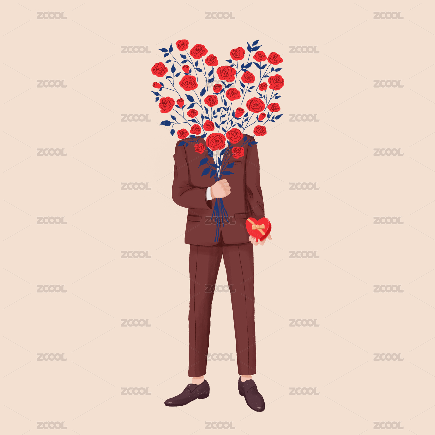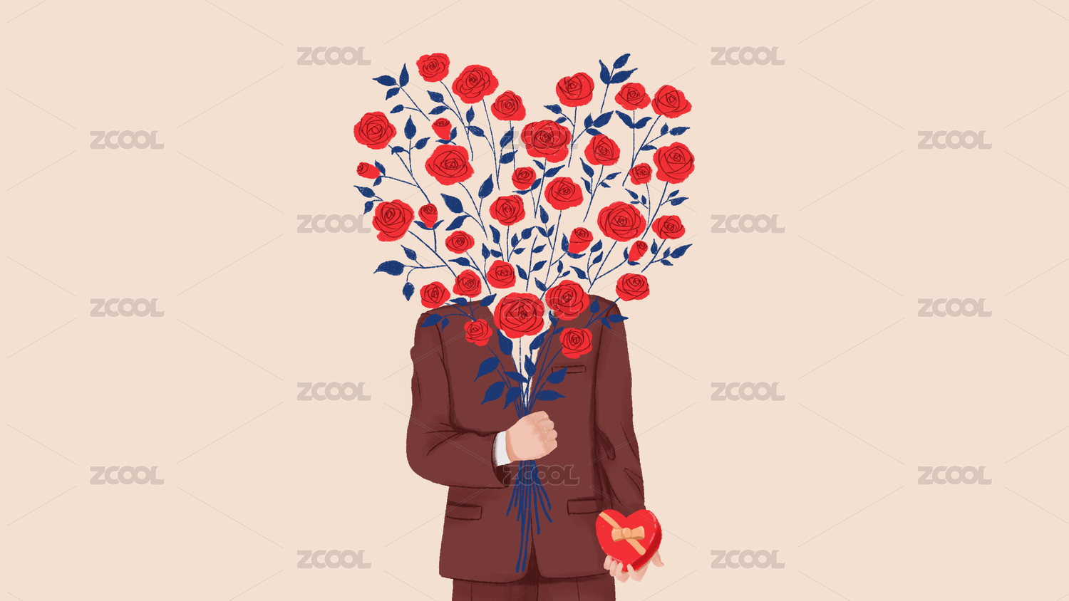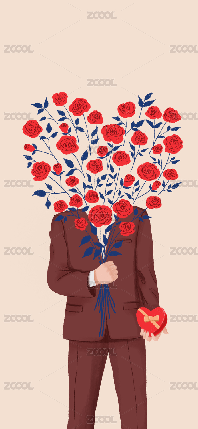 情人节手持玫瑰和礼物