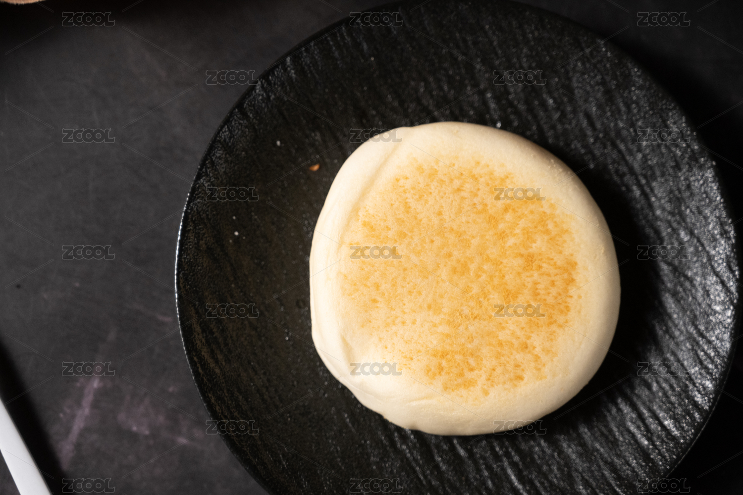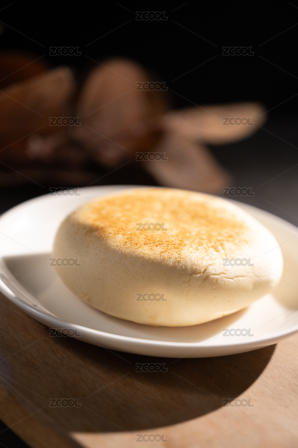 桌面上的陶瓷盘子里的新鲜的手撕餐包