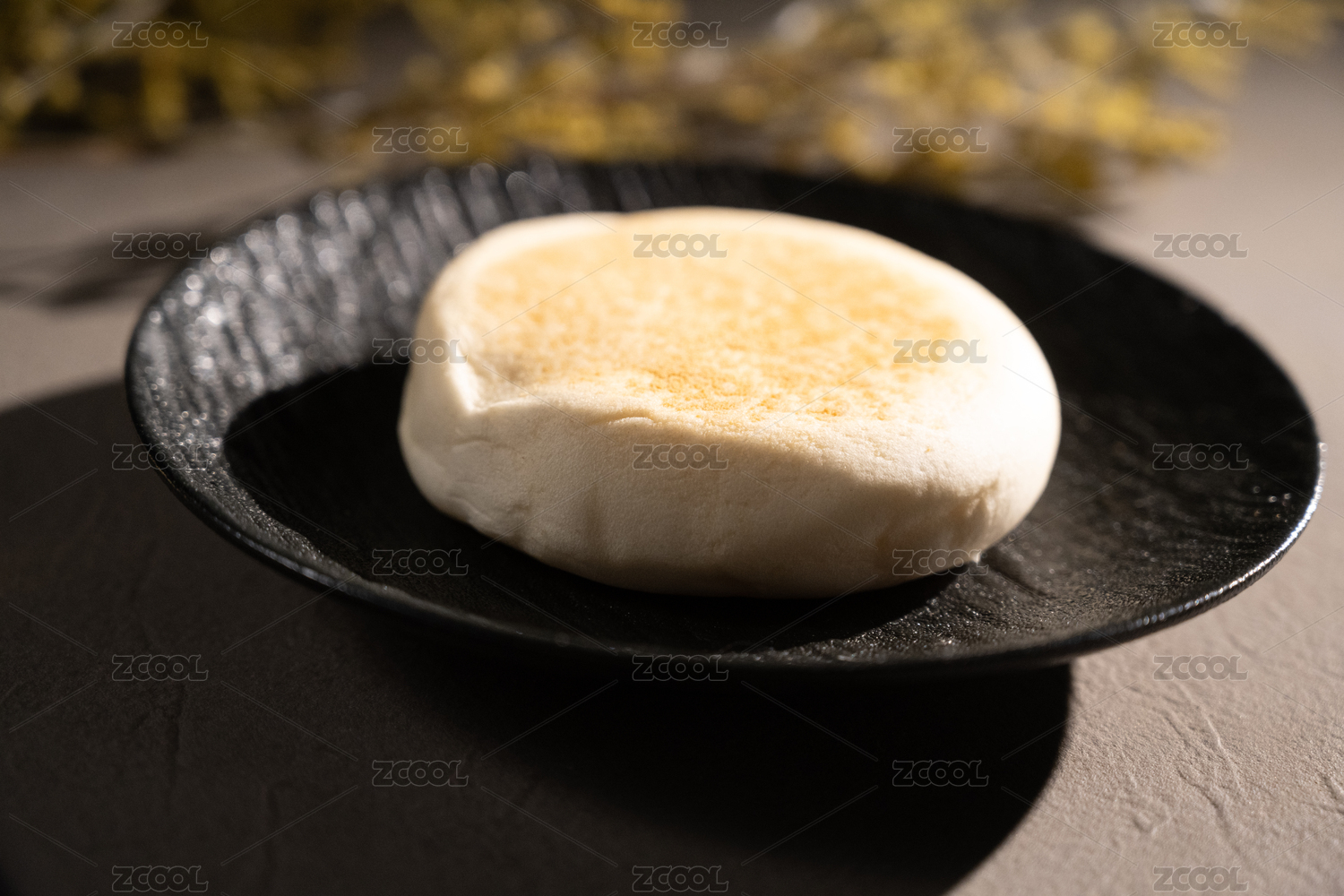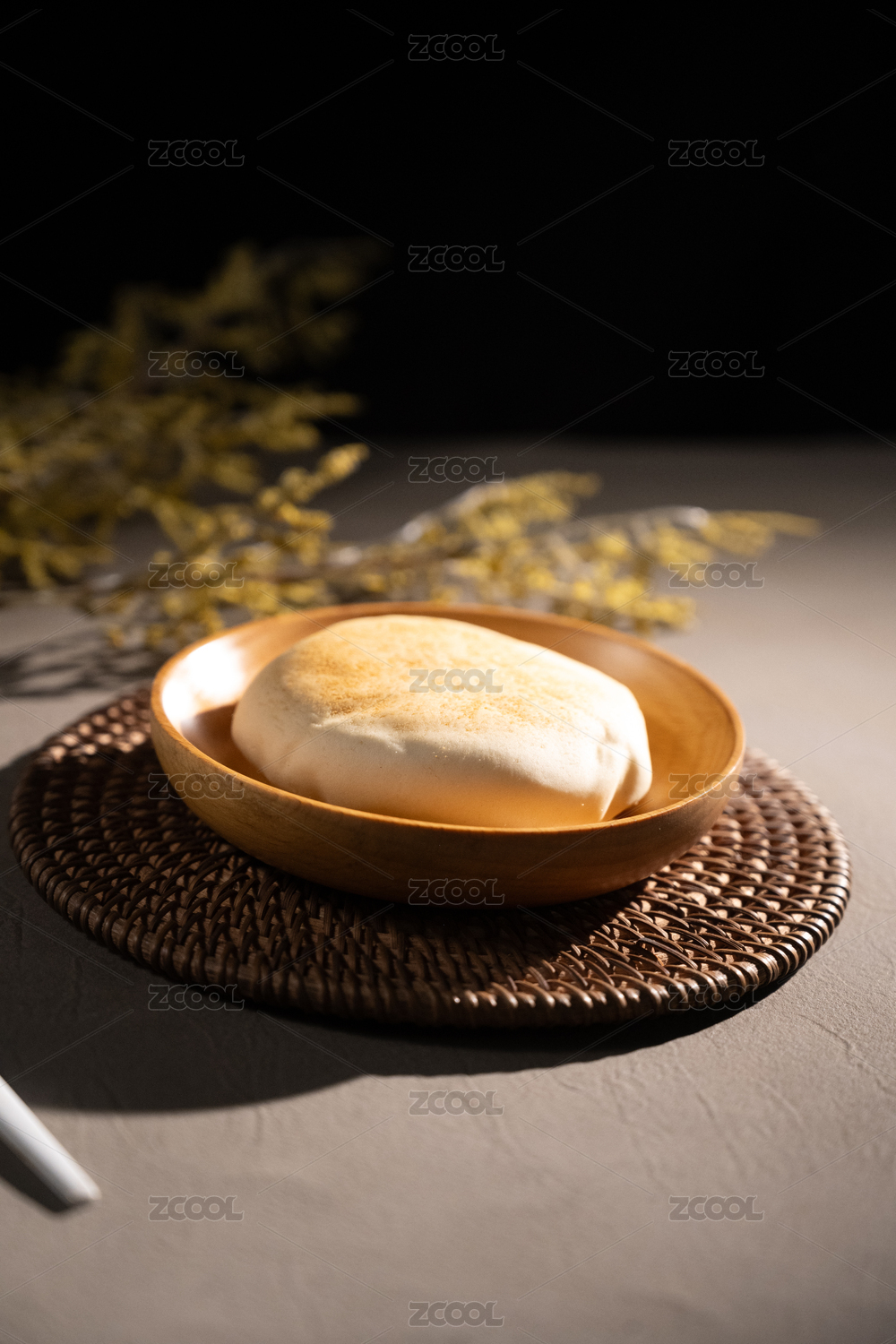 桌面上的盘子里的美味可口的豆乳餐包