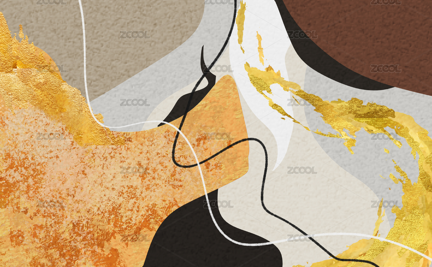 抽象金色线条色块抽象水墨画抽象油画抽象装饰画