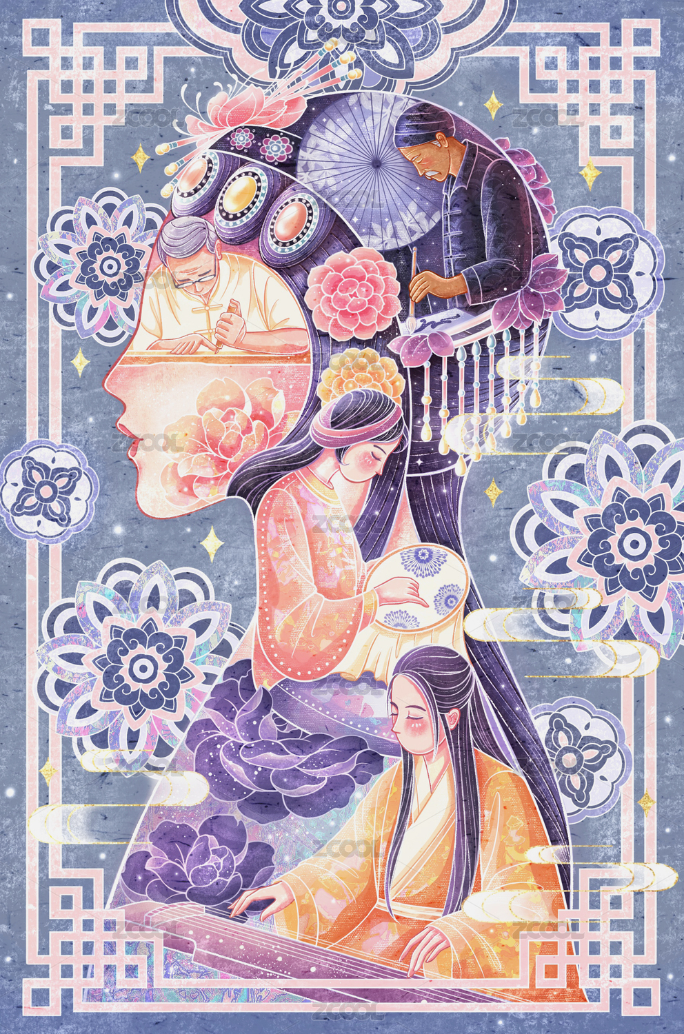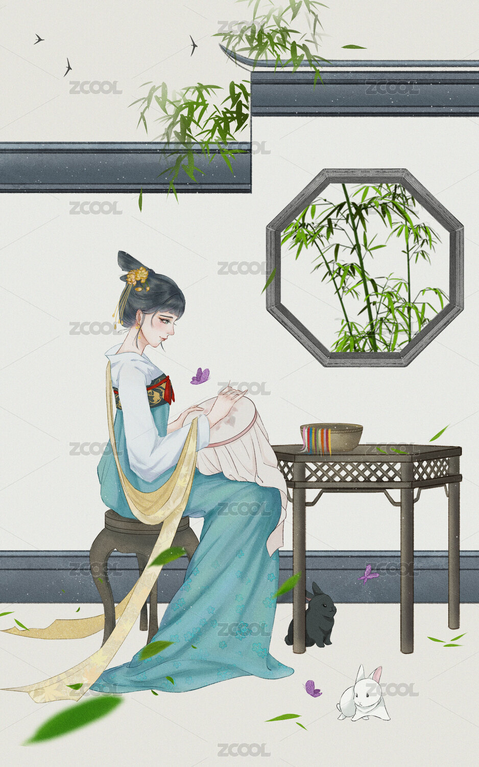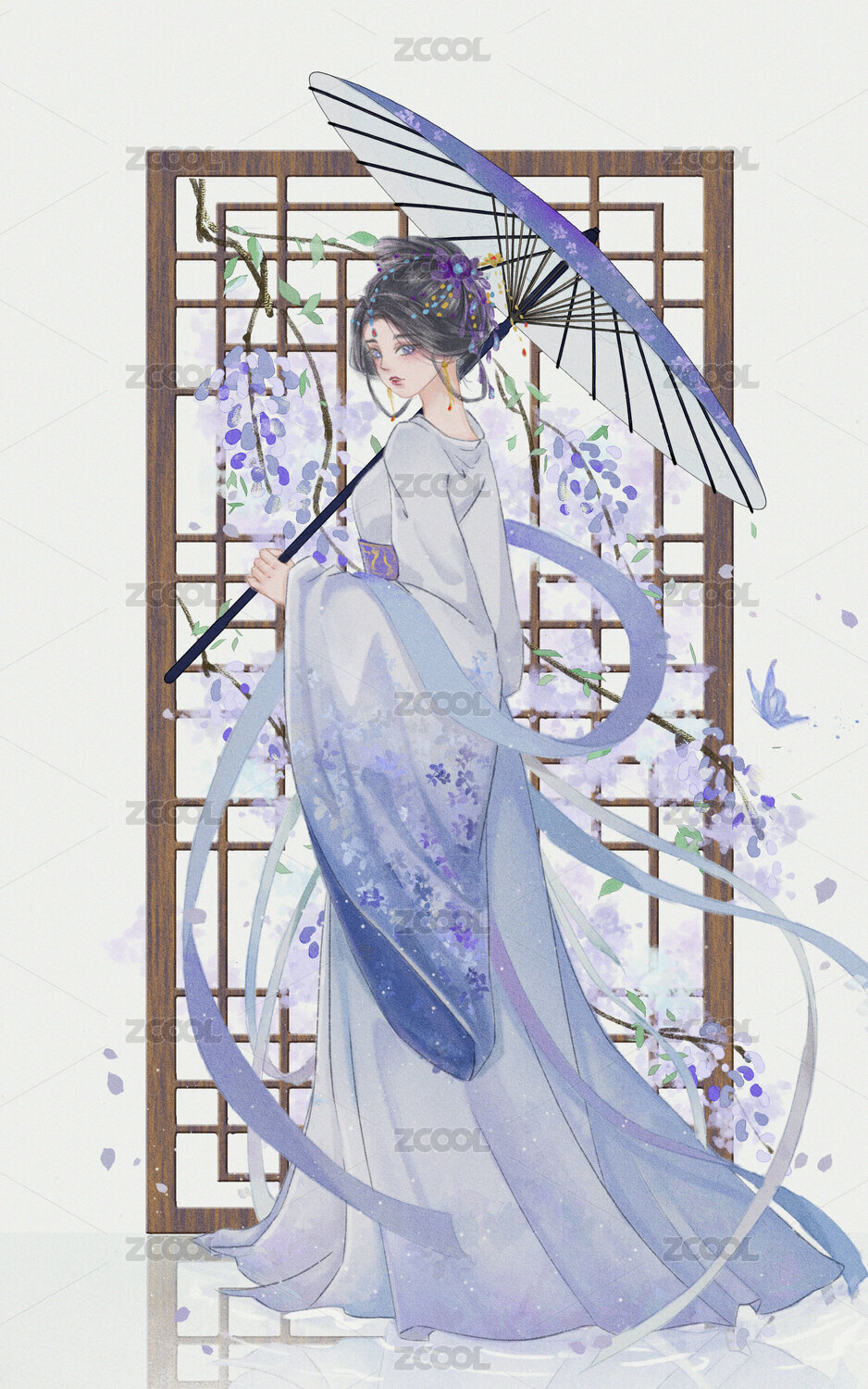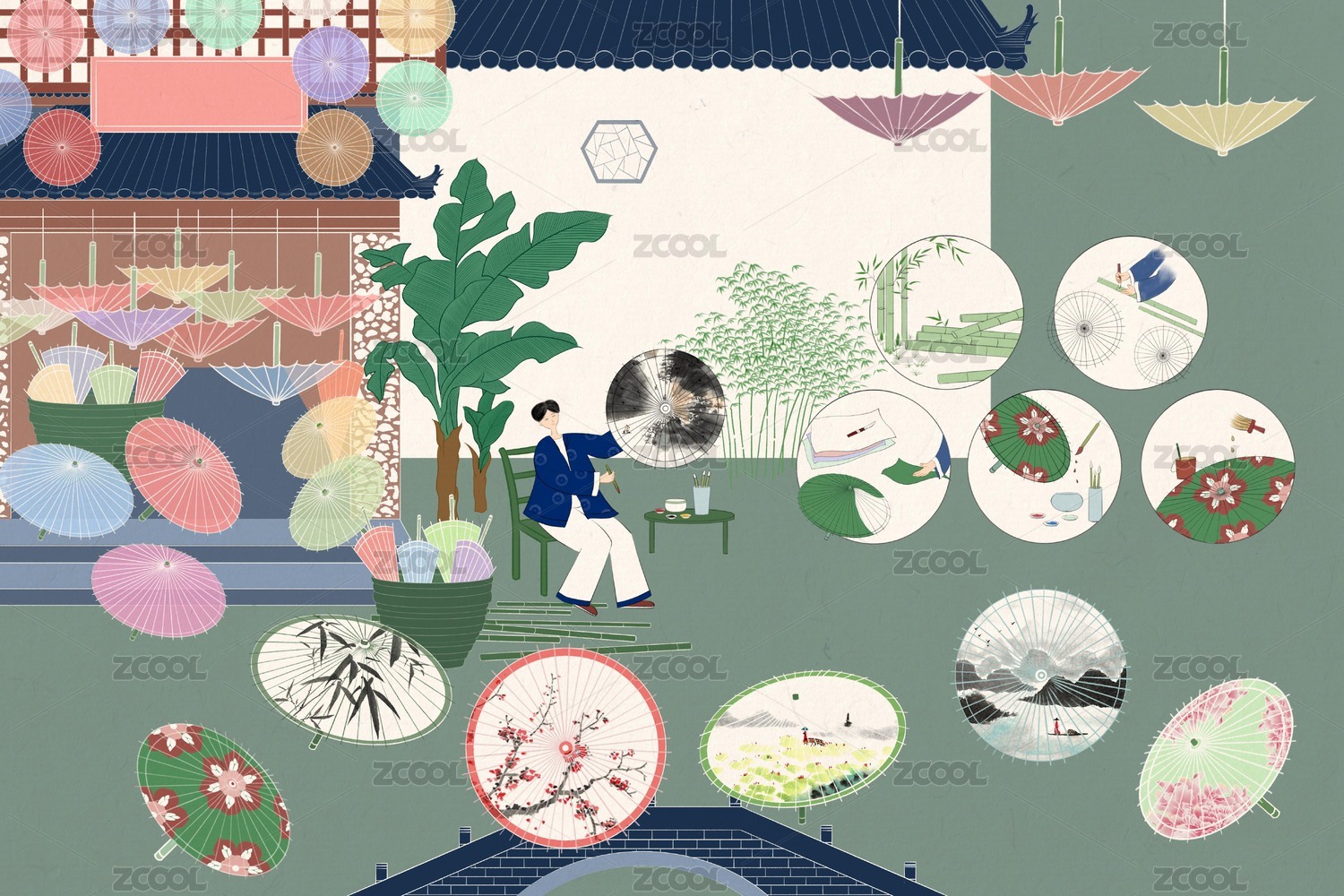 传统非遗文化插画油纸伞制作
