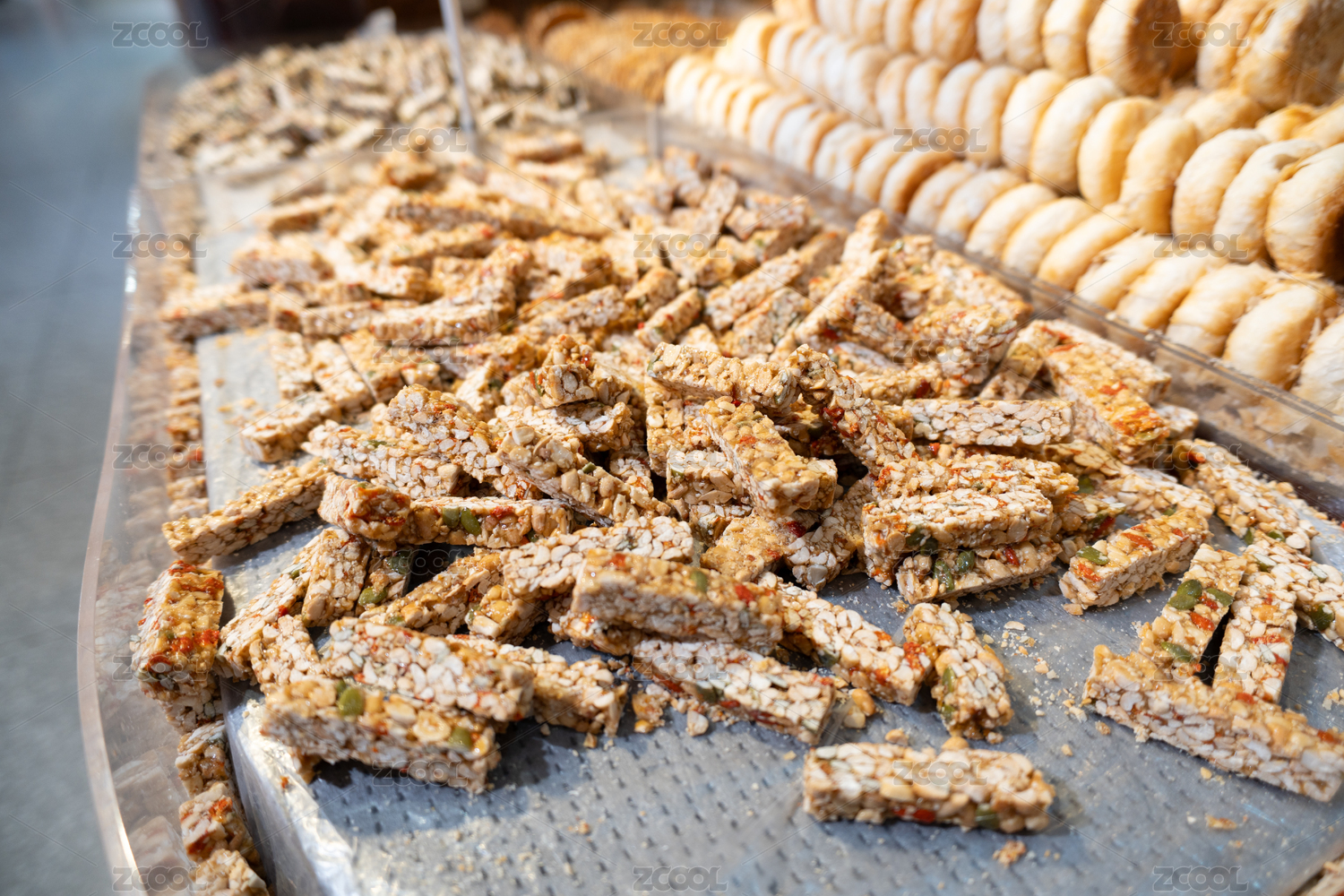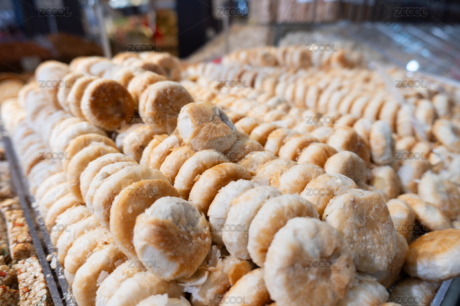 亚洲中国超市的货柜上摆满了传统美食绿豆饼