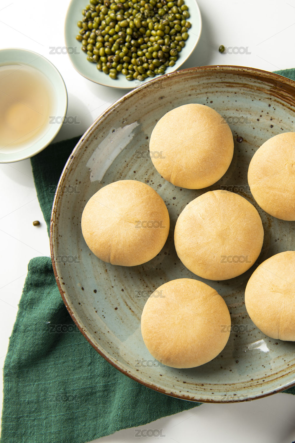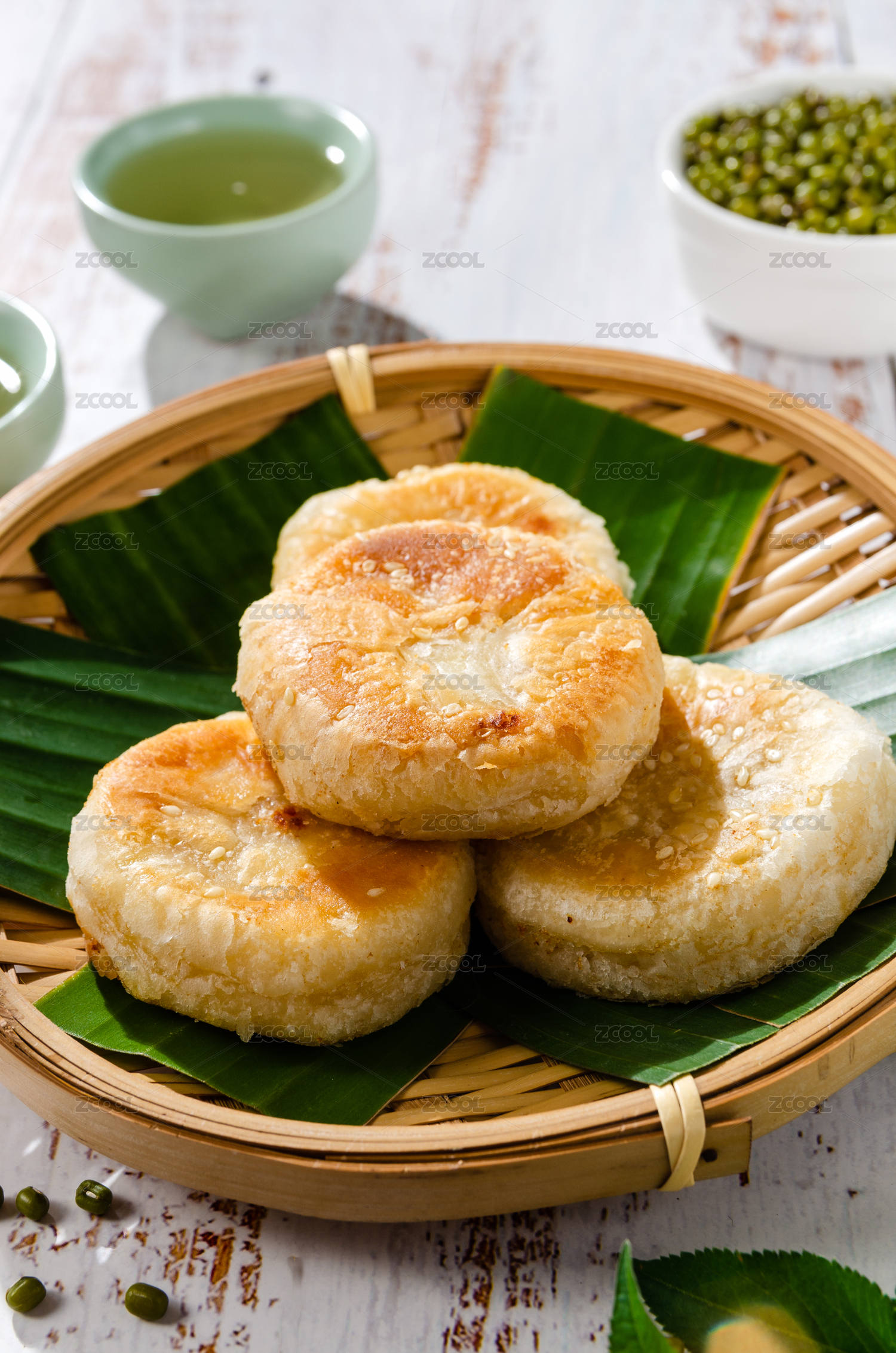 中国风背景健康早餐绿豆饼室内静物特写