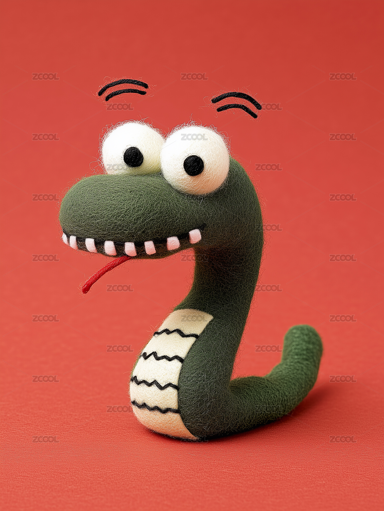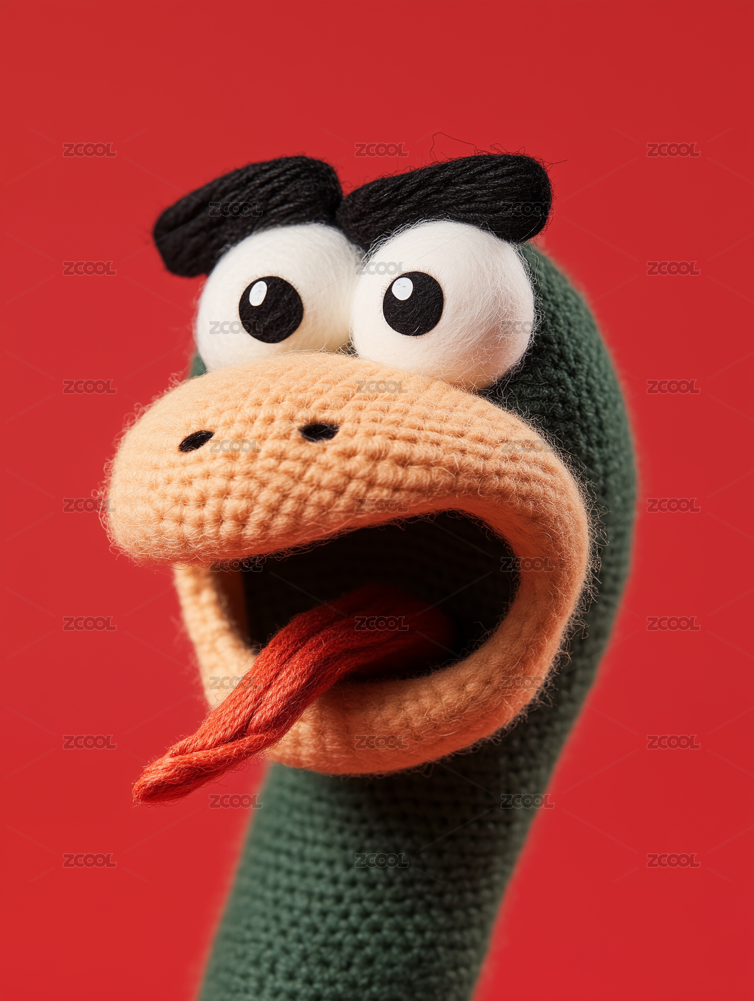 惊叹表情的毛线材质的蛇的表情特写