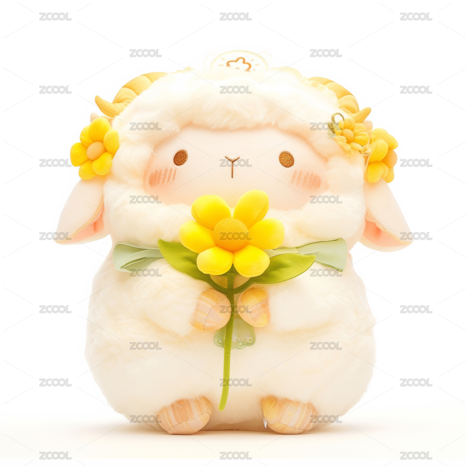 白色可爱的绵羊,毛线材质毛绒玩偶设计