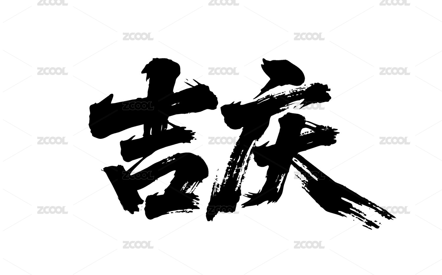 吉庆矢量书法手写毛笔字