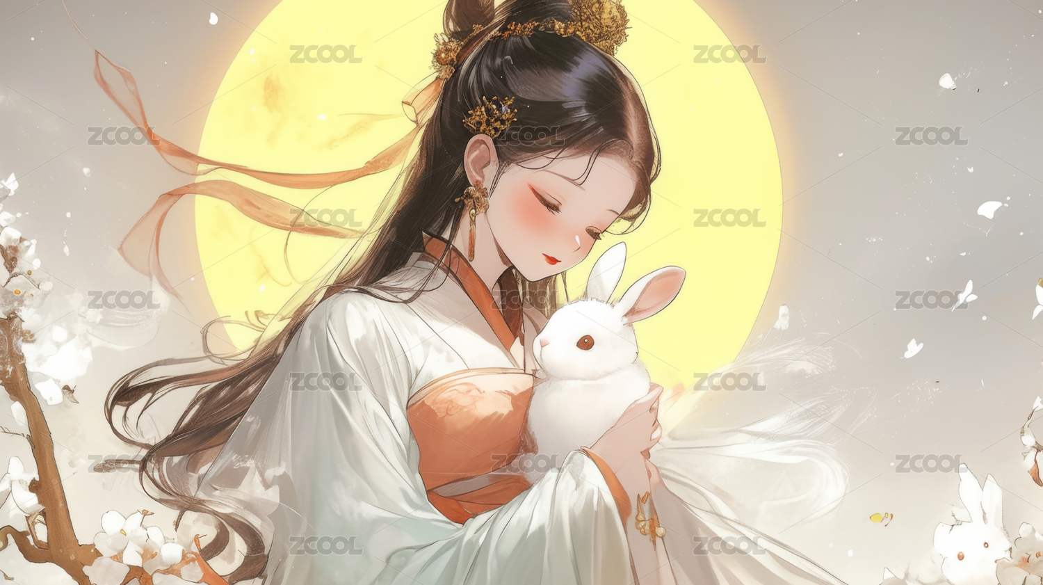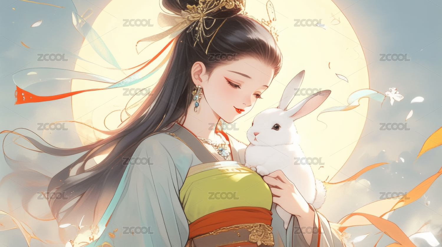 中国神话故事嫦娥抱着玉兔