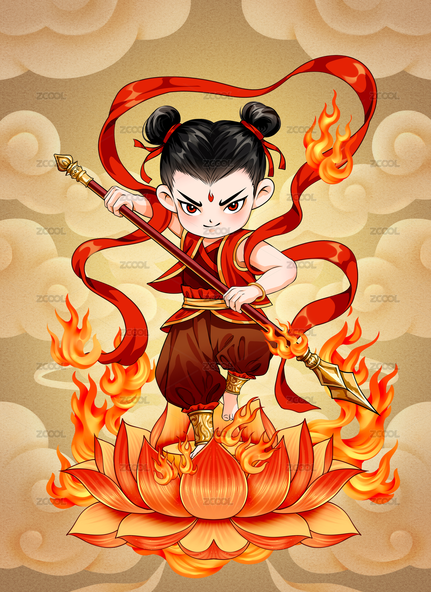 中国神话故事人物哪吒封神榜插画