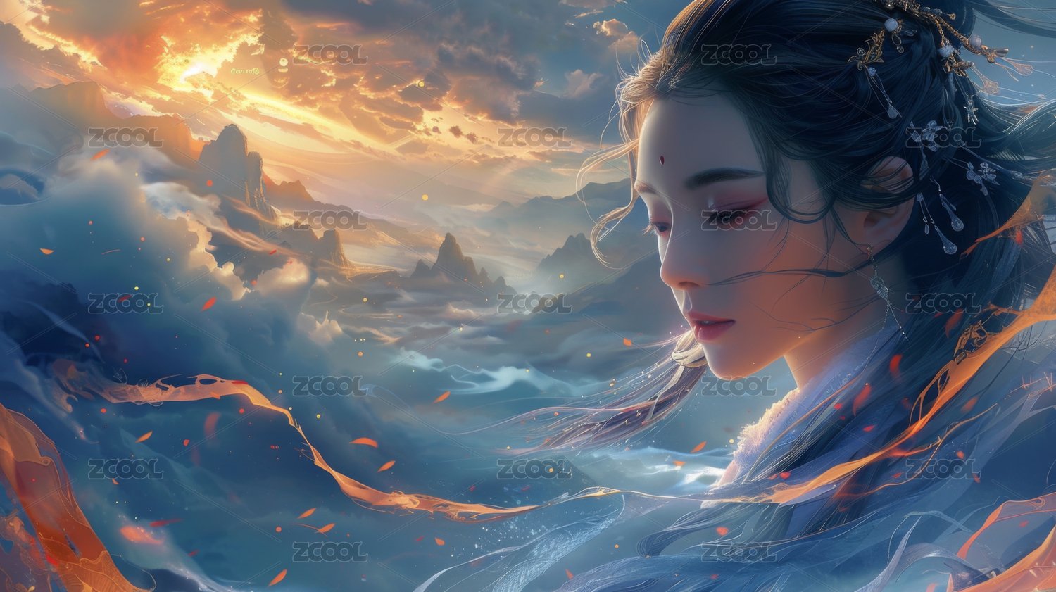 神仙主题创意插画背景 | 手机壳设计
