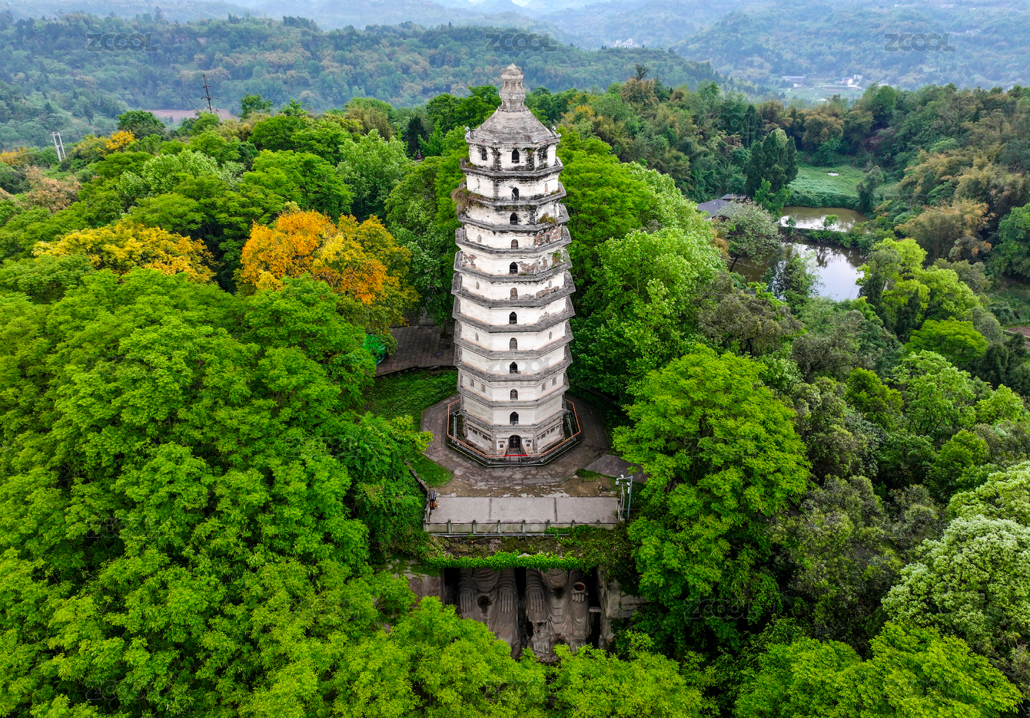 重庆市大足区大足石刻北山石刻景区航拍