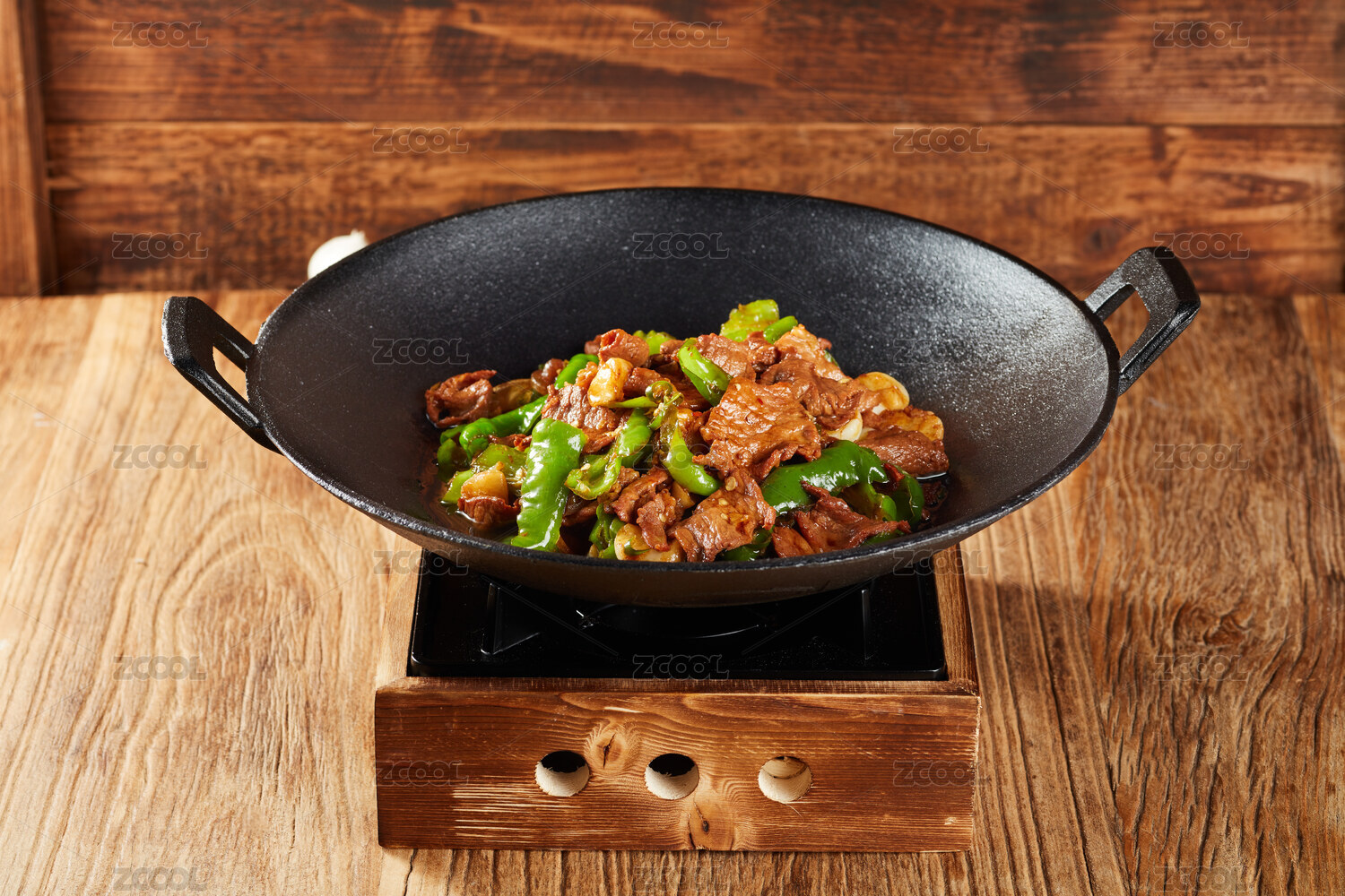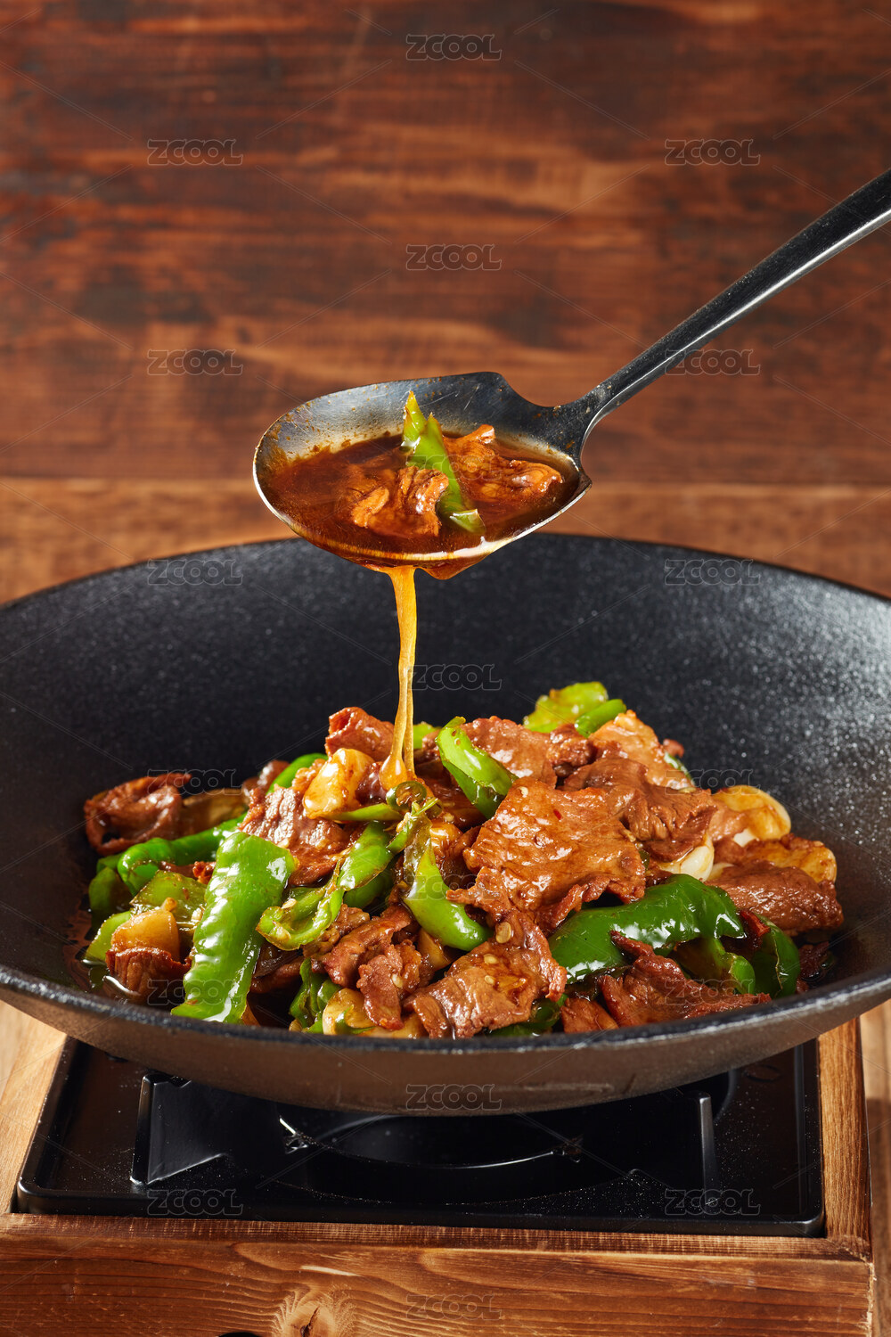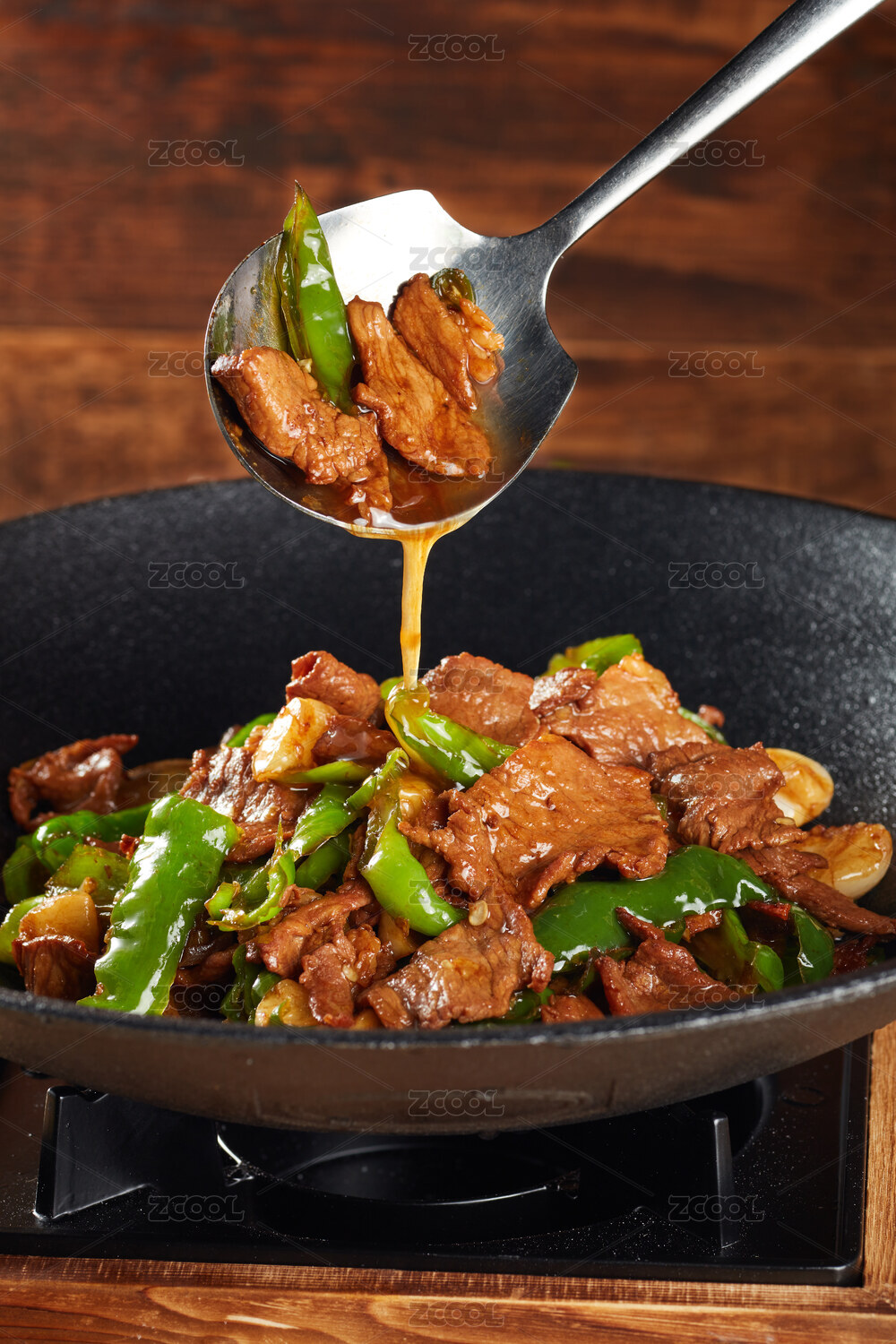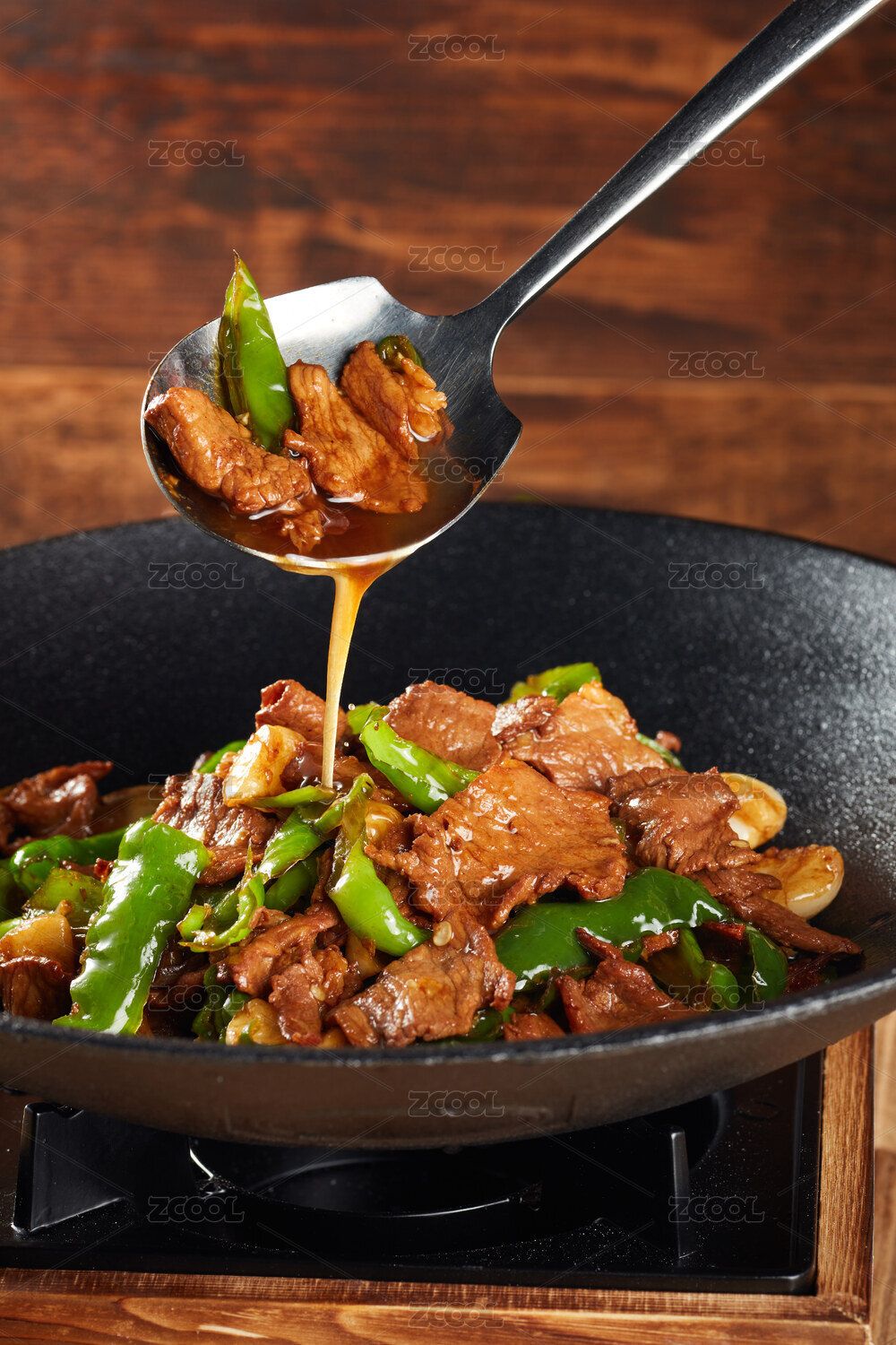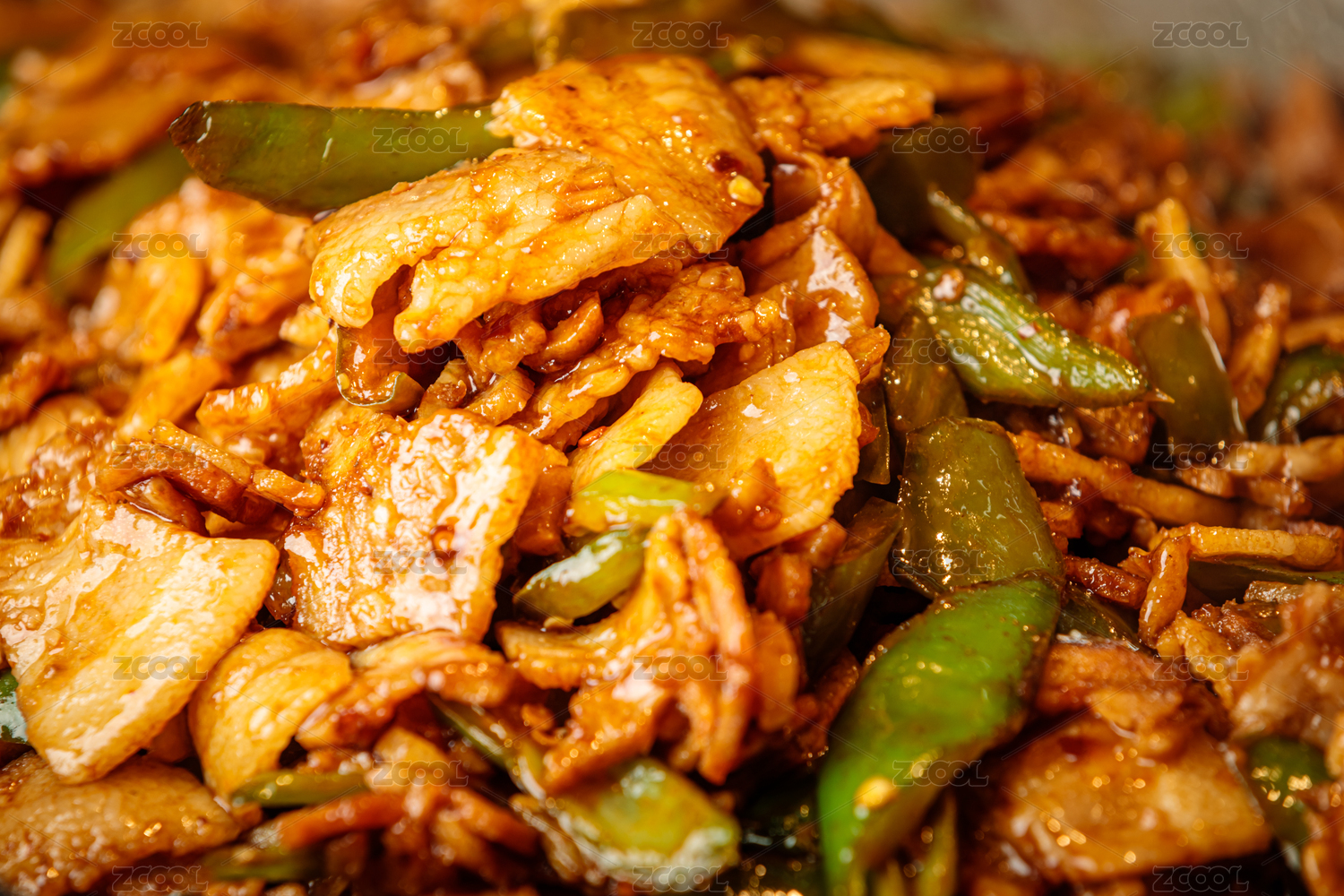 放在盘子里的湖南小炒肉青椒炒肉侧拍