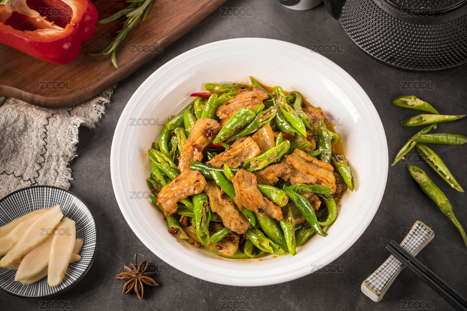 湘味美食特色菜白辣椒炒烟熏腊肉