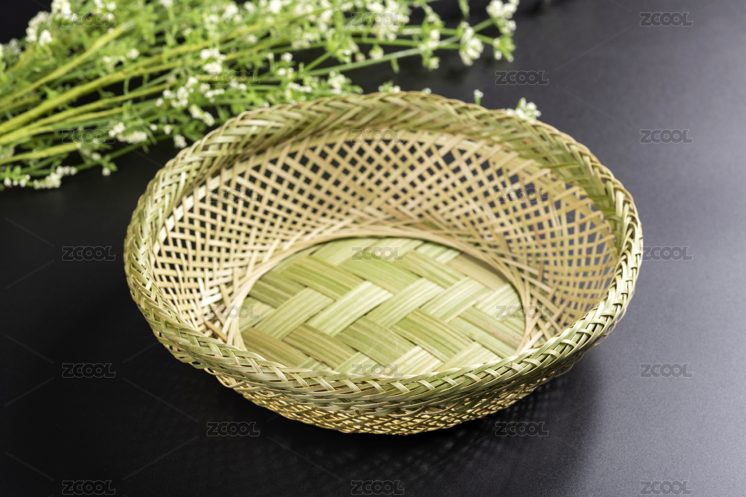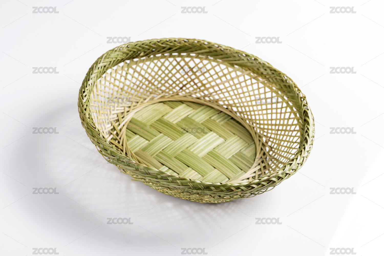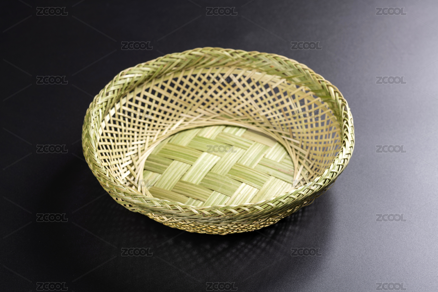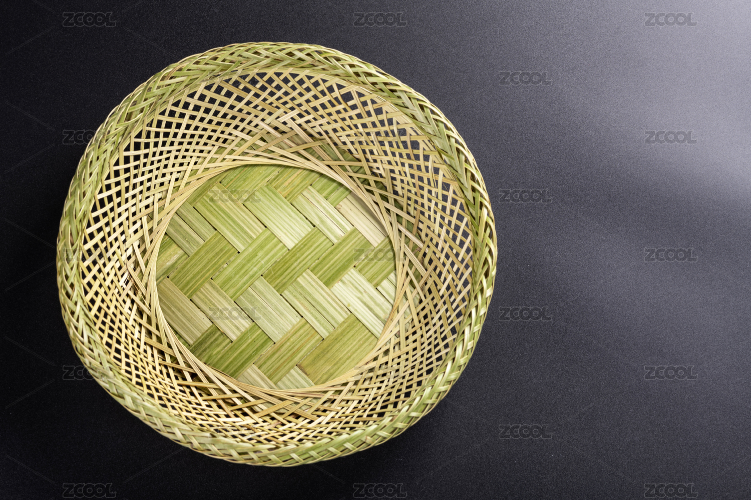 制作精美的竹编制品圆簸箕摆放在桌面上