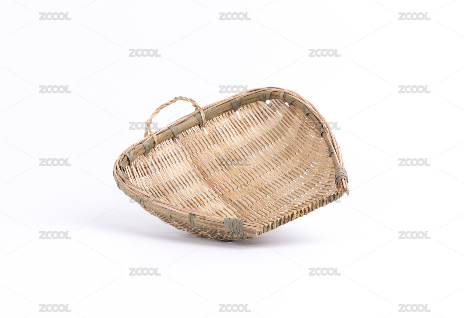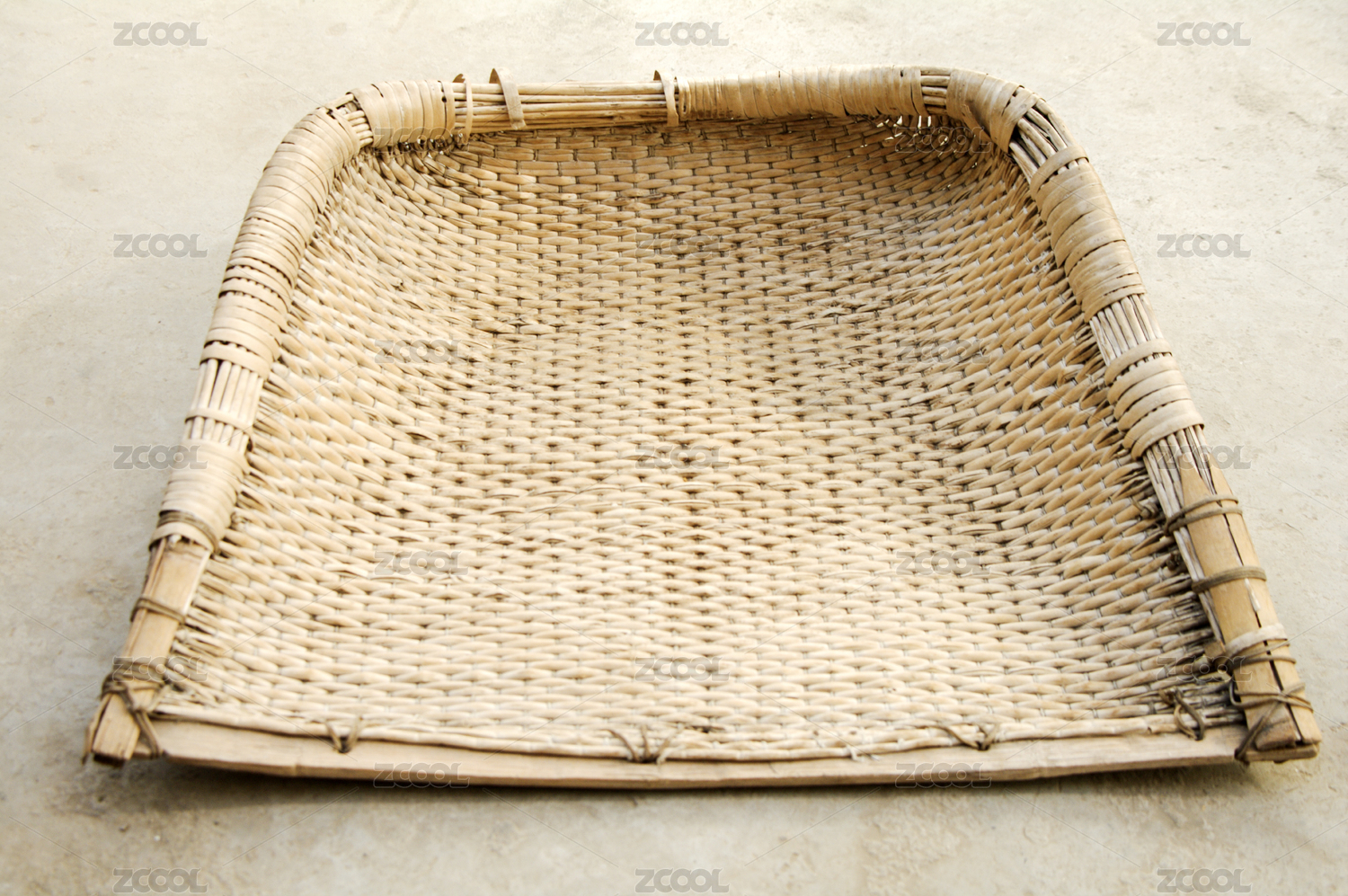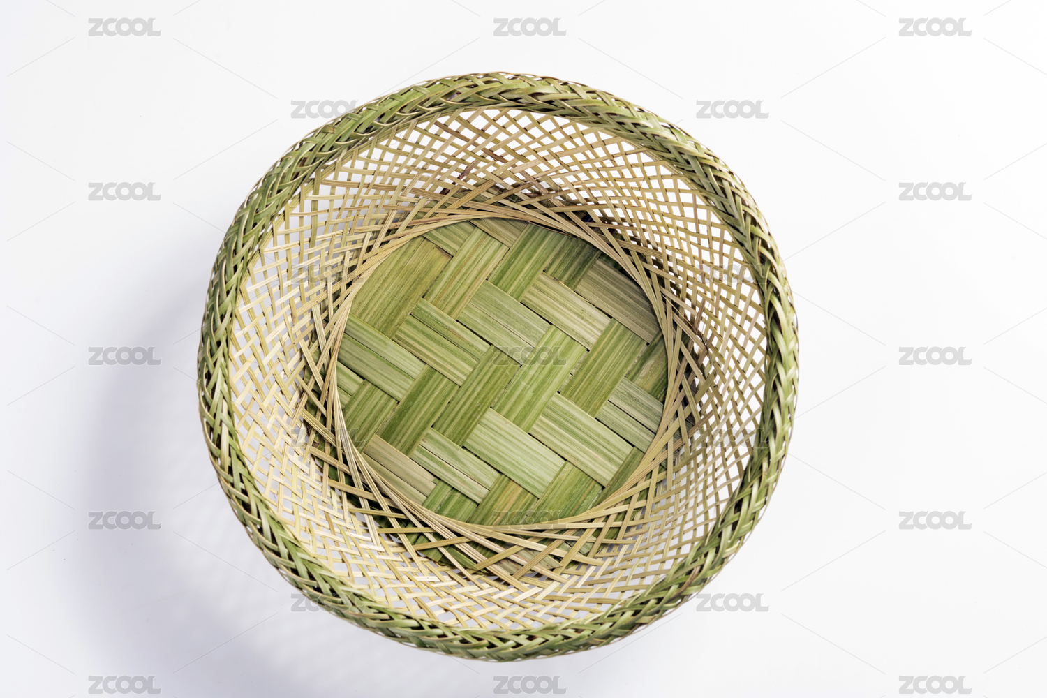 制作精美的竹编制品圆簸箕摆放在桌面上