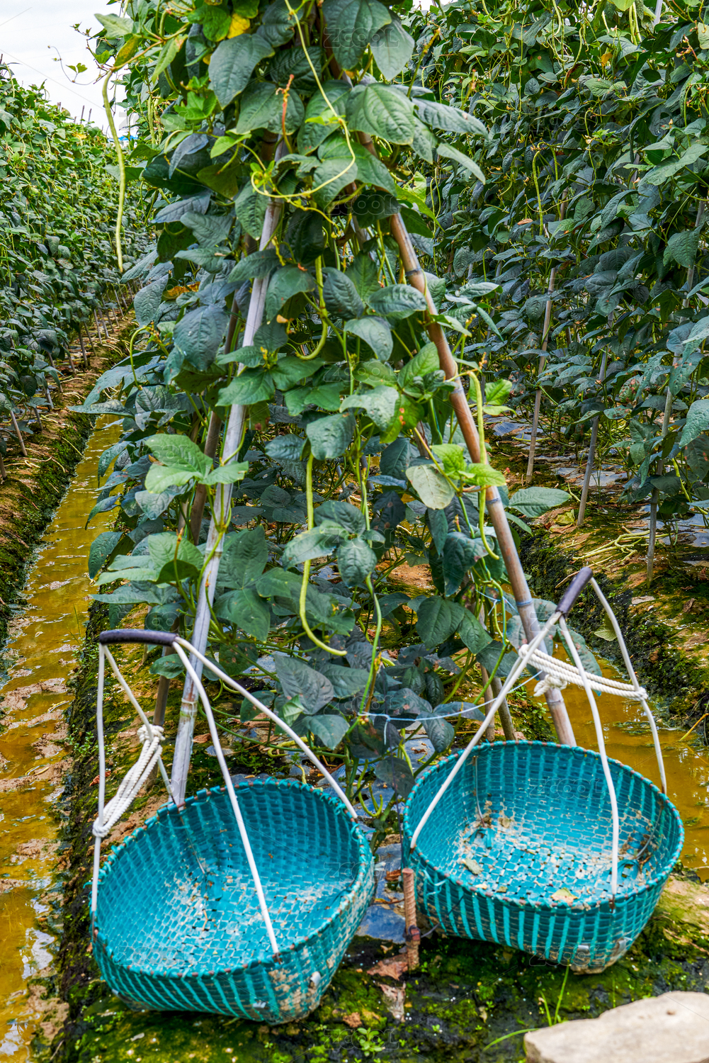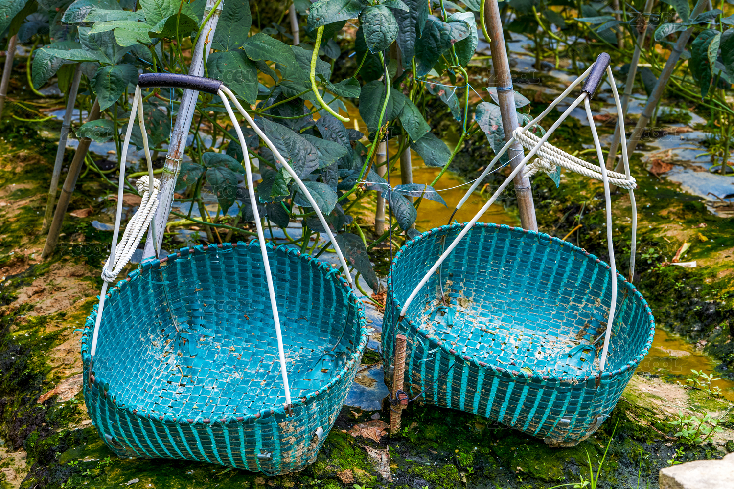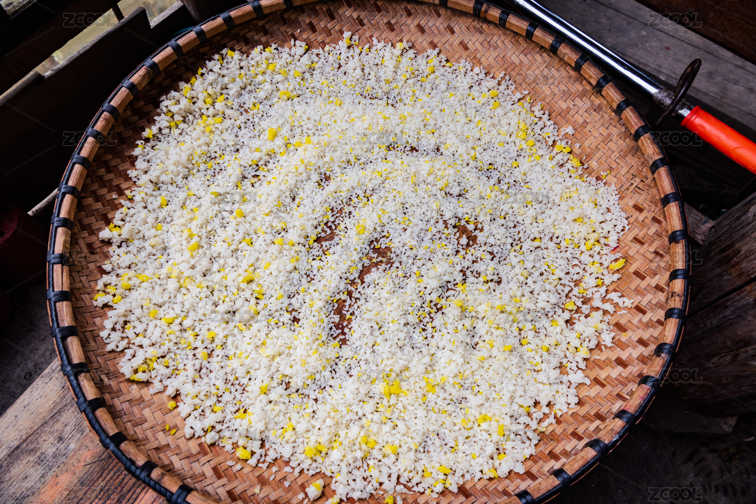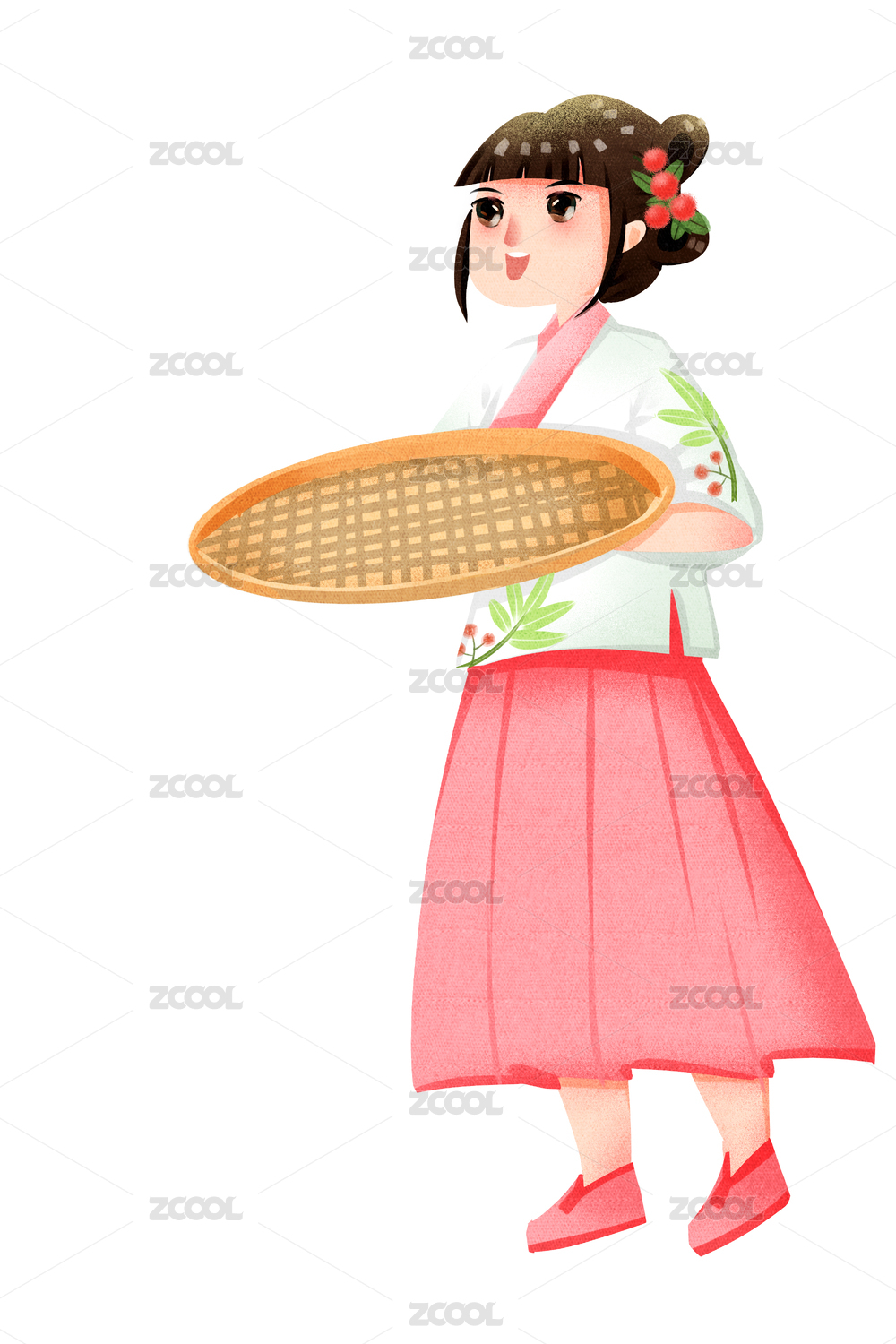 制作精美的竹编制品圆簸箕摆放在桌面上