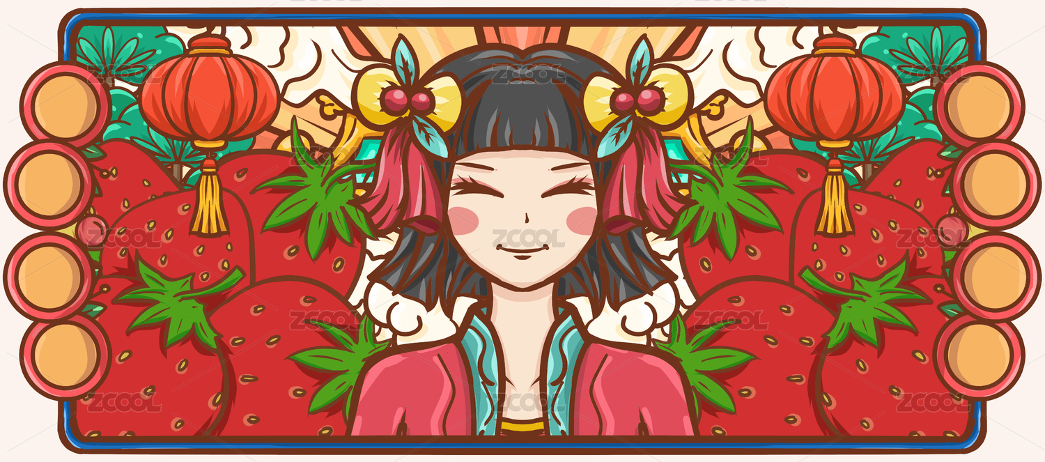 原创手绘卡通草莓水果插画海报素材