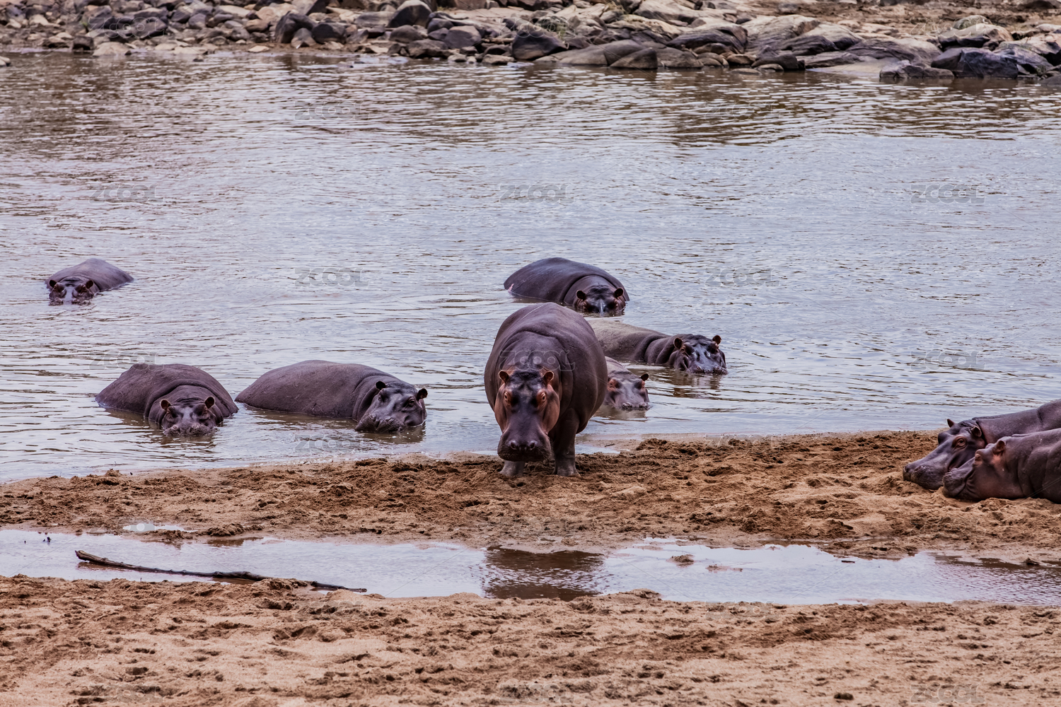 坦桑尼亚塞伦盖蒂湿地河马生态环境