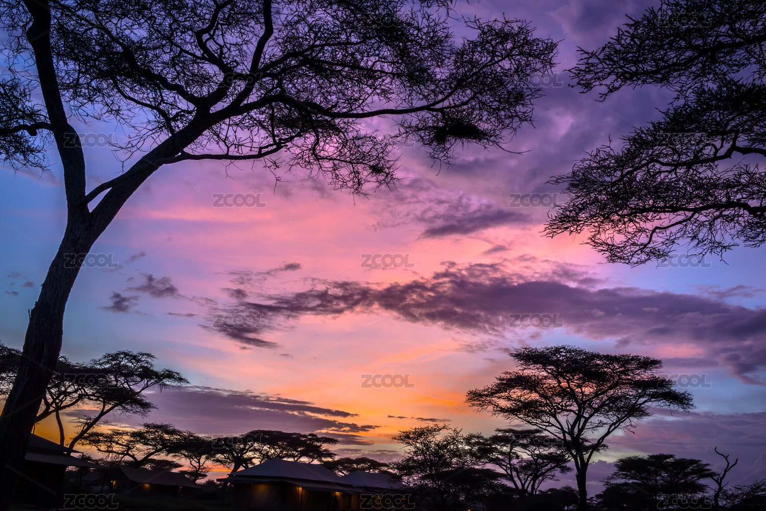 非洲坦桑尼亚塞伦盖蒂草原的晚霞