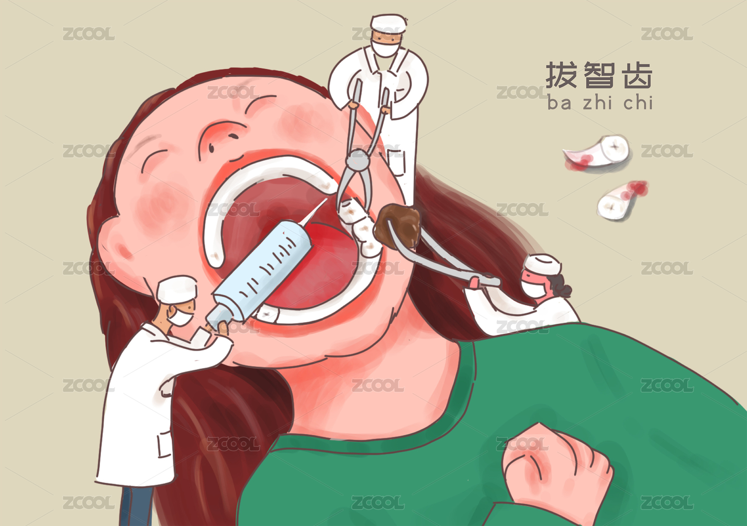 正在拔智齿的女孩/张大嘴巴拔牙