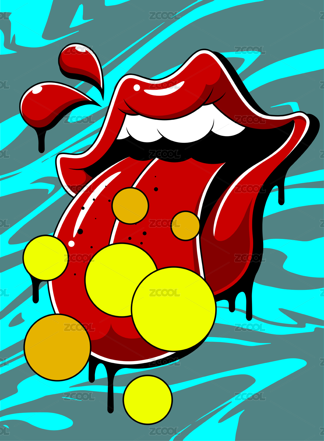 波普卡通摇滚嘻哈大嘴唇吐舌头圆球插画
