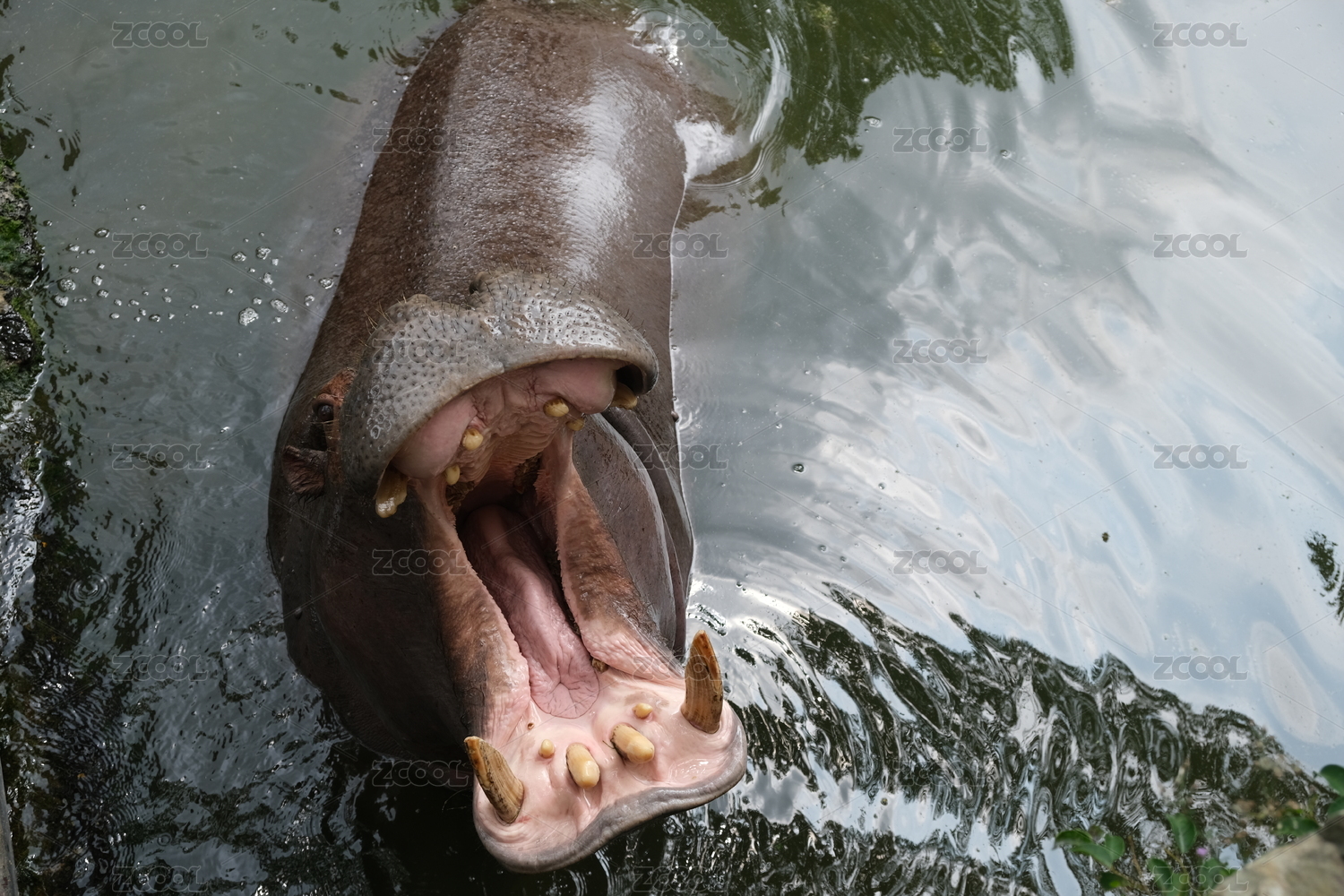 一只张开大嘴的河马