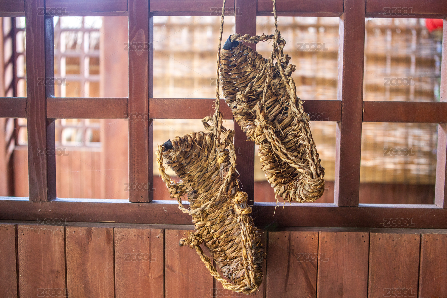 乡村农家编织物草鞋日用品特写