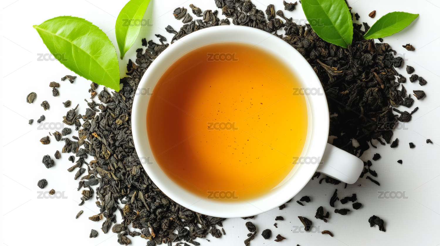 白色背景上的红茶茶叶原材料