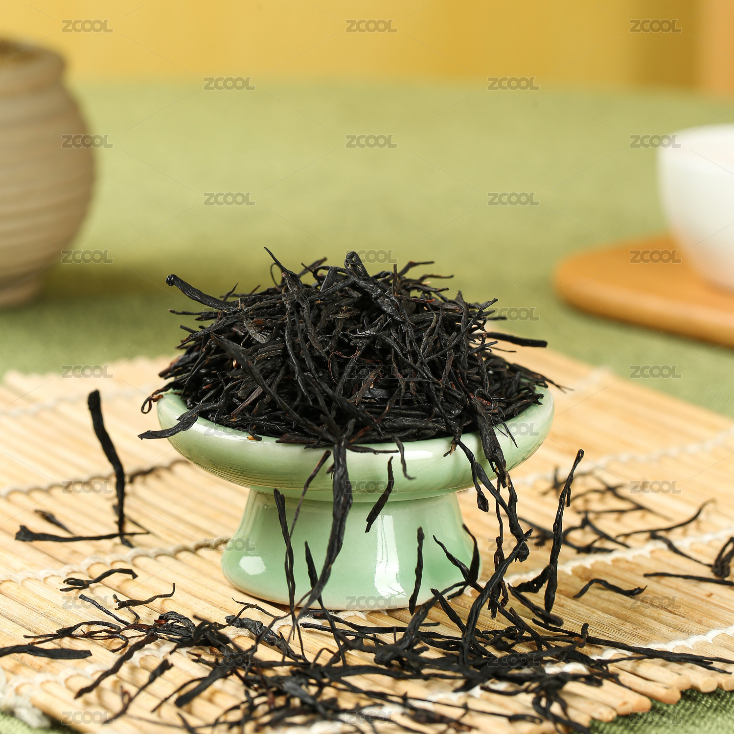 高档青瓷茶具装的红茶倒进茶杯