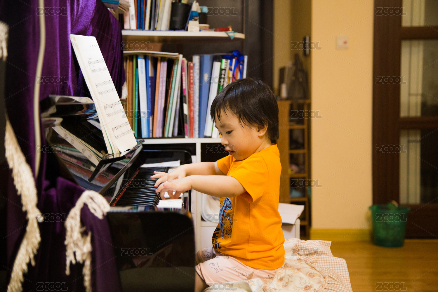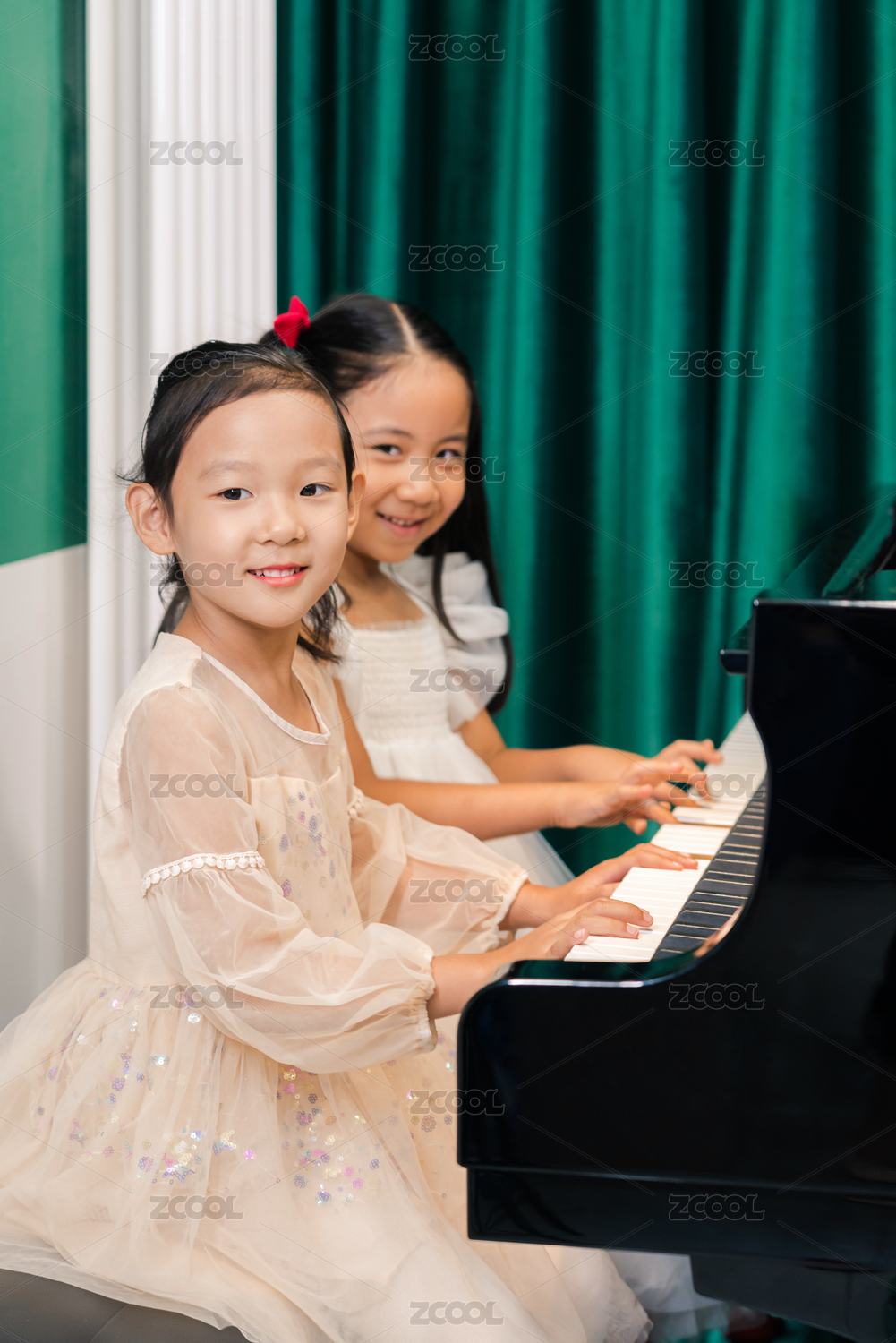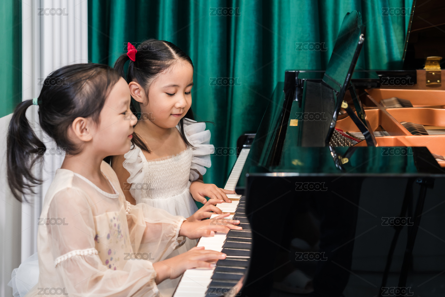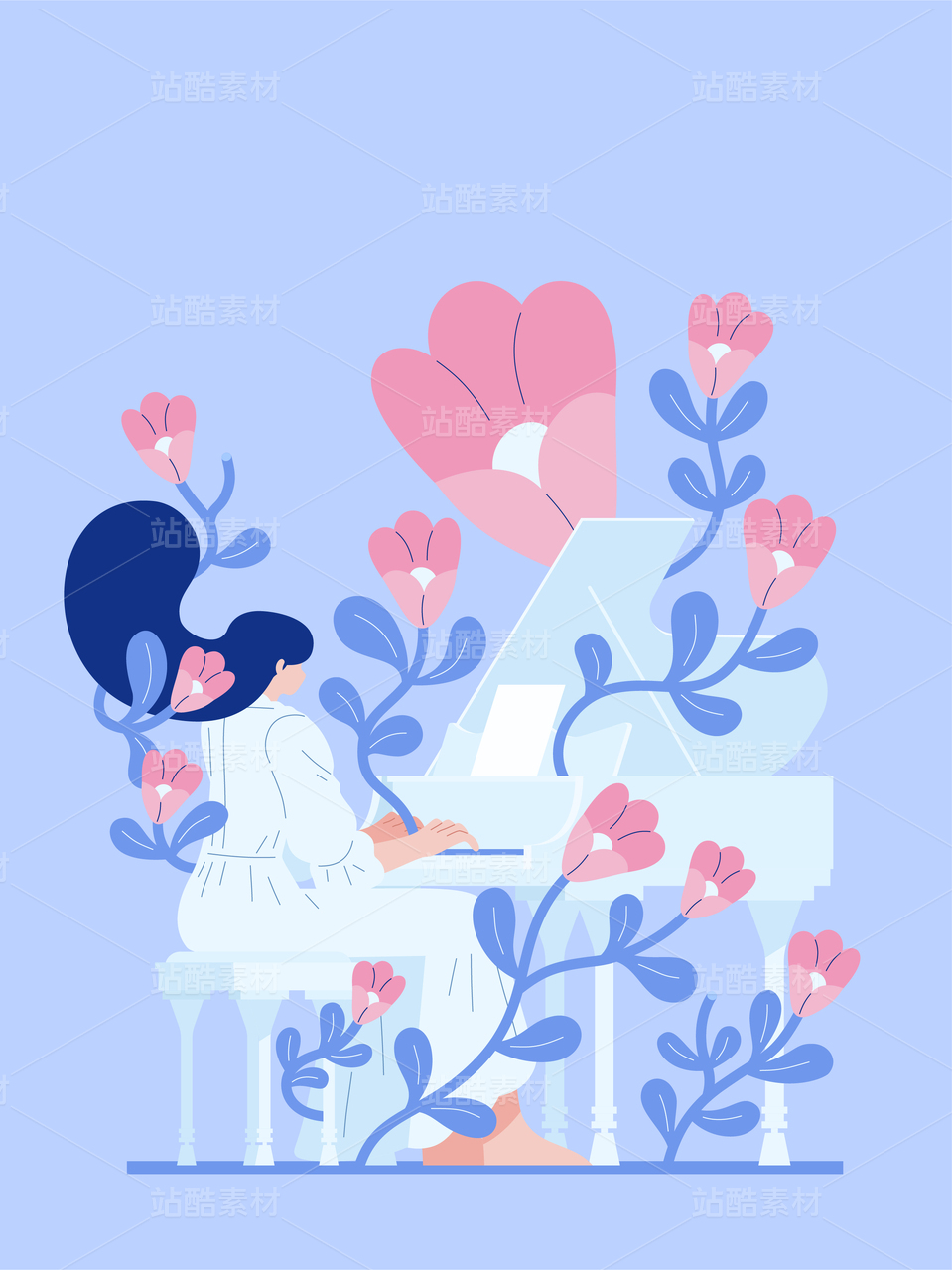 音乐家在舞台上弹钢琴,女孩拉小提琴插画