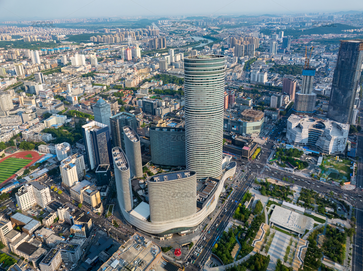 航拍徐州苏宁广场与建设中的德基广场