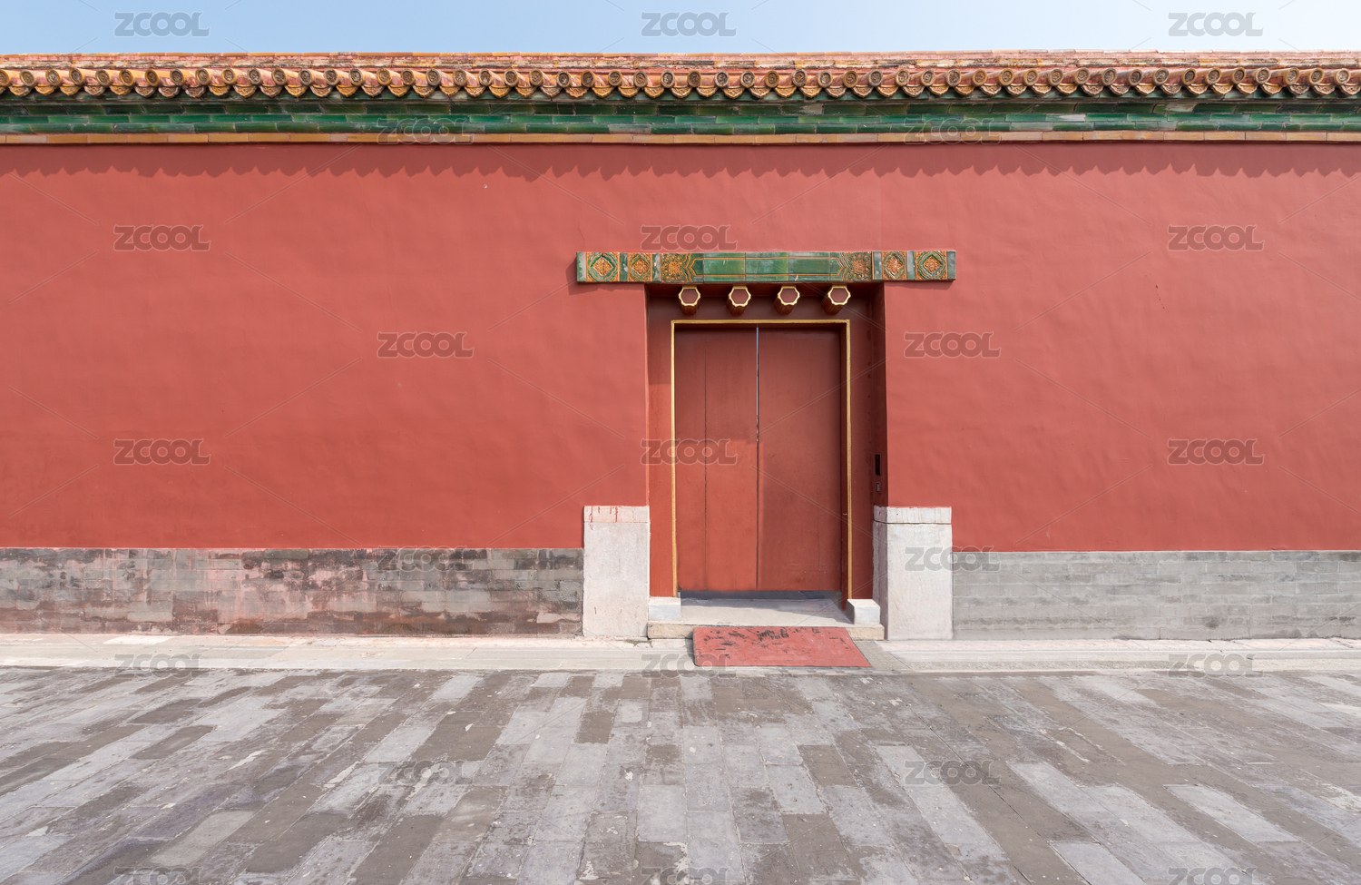 北京故宫博物馆的红墙绿瓦、门头和红门。