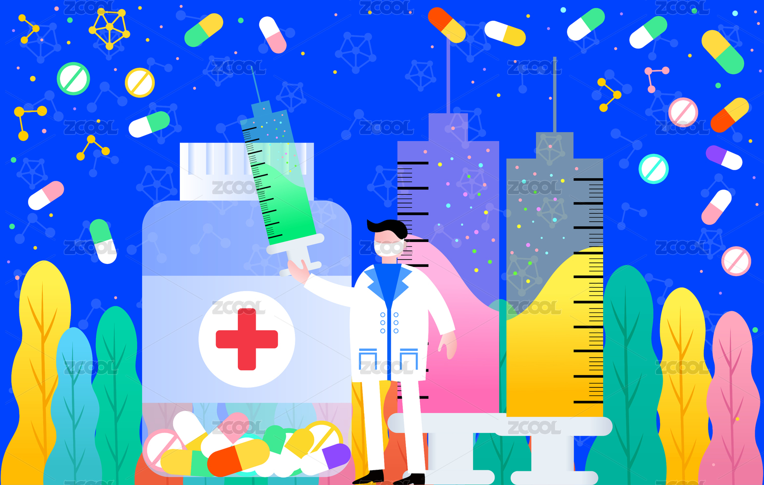 一本书打开飞出药瓶试管烧瓶药体温计针管的