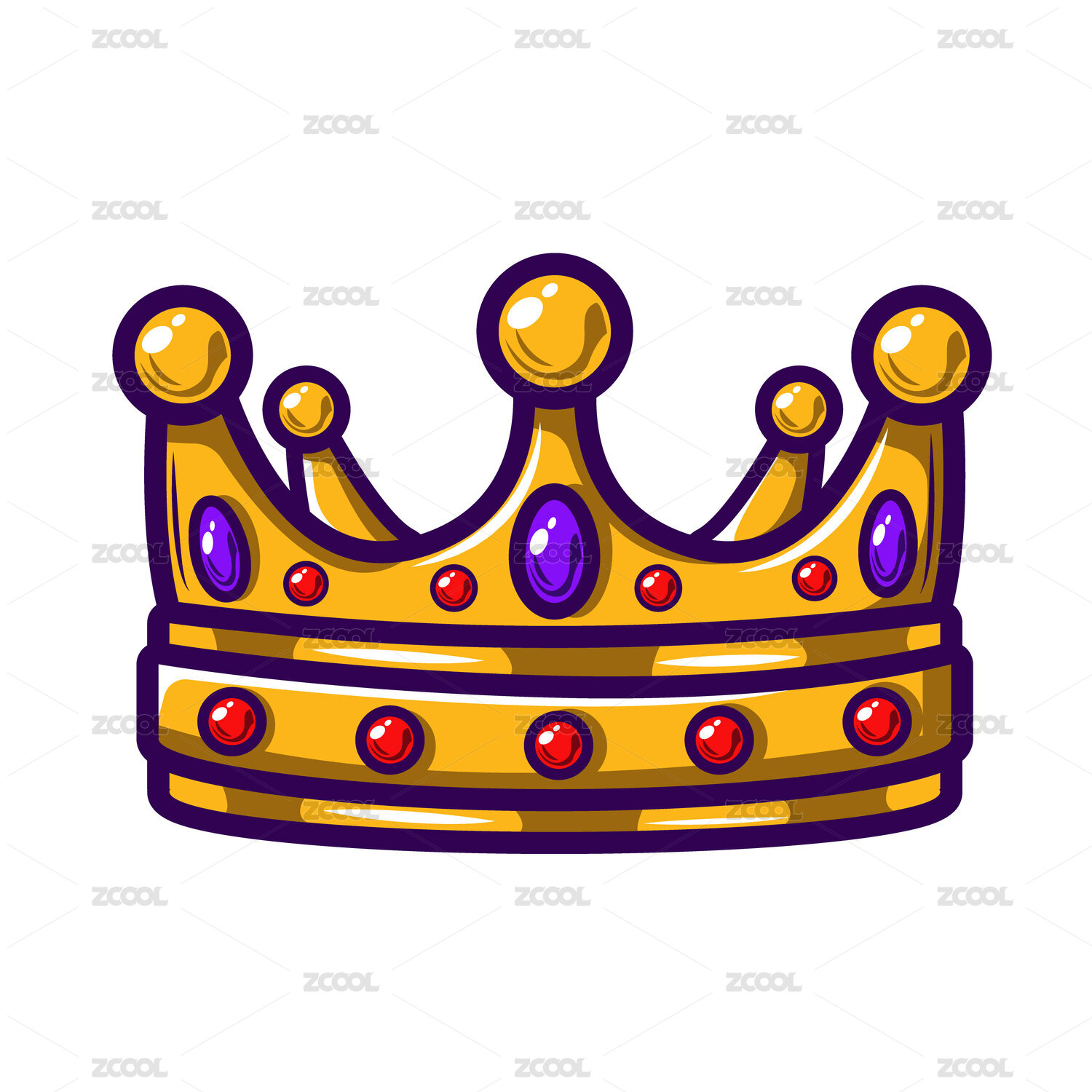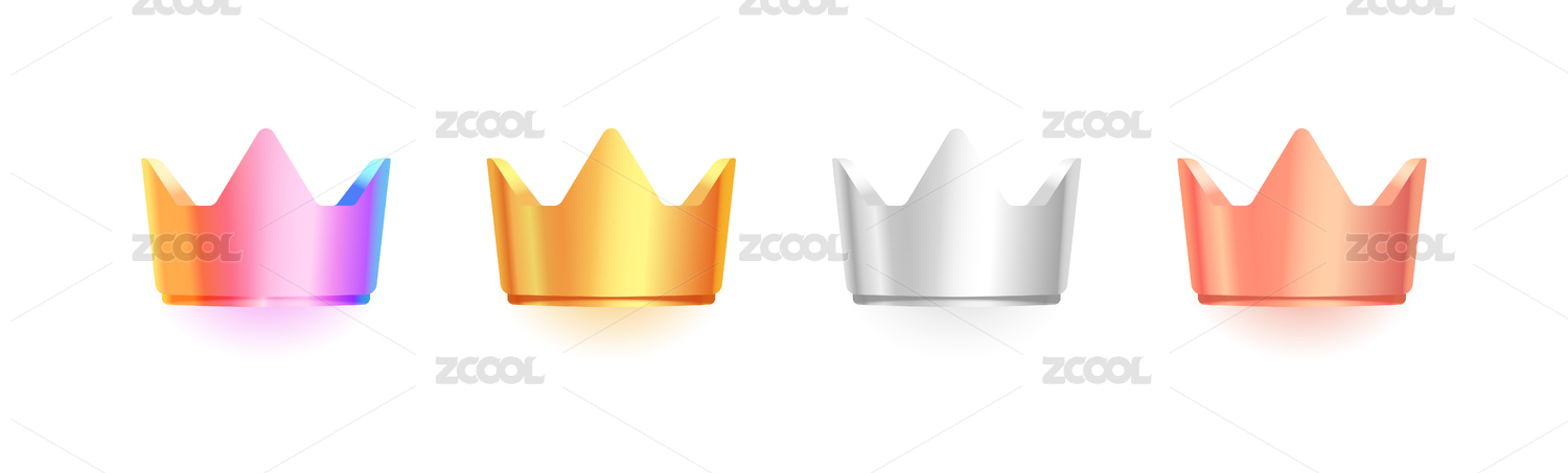 五彩金银铜皇冠王冠质感矢量图标插画